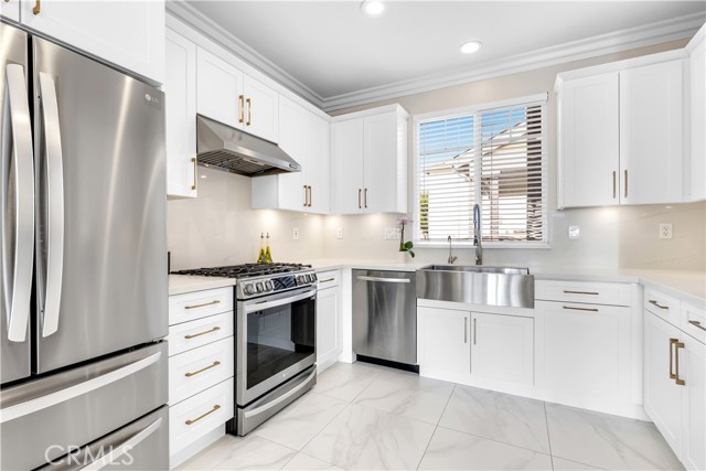 This modern 3-bedroom Detached Residence features a large private wrap-around yard, custom cabinets in the fully renovated kitchen, impeccably crafted fireplace surround & mantle in the living room, and renovated bathrooms. All living space is located on the main level, in what is the 2nd largest model in this neighborhood, creating a seamless flow from the kitchen, living, and dining areas - to the spacious backyard. The fully remodeled kitchen features bright white custom cabinetry with sophisticated drawer and cabinet hardware, quartz countertops and backsplash, along with all stainless steel appliances, range hood and an extra-large single-basin sink. Upstairs you'll find 3 bedrooms, a laundry room and 2 remodeled bathrooms, along with a loft featuring two built-in desks, providing a ready-made home office or study space. The spacious master bedroom includes a walk-in closet with custom fit dresser drawers, and a remodeled bathroom that matches the secondary upstairs bathroom which also features dual vanities. The backyard has plenty of seating and space to BBQ, play and entertain, with no neighbors behind. Enjoy the unbeatable location — walking distance to award-winning schools, local dining, shopping, community pools, parks, and playgrounds. Home features include smart thermostat, EV-Charger, and filtration water system at kitchen sink. Additional home improvements include a whole house repipe, plantation shutters throughout most of the home, ceramic tile flooring downstairs and engineered wood floor upstairs. Experience the friendly charm and everyday convenience that make Ladera Ranch one of Orange County's most sought-after communities. HOA Fees include: front of home landscaping maintenance and high speed internet.