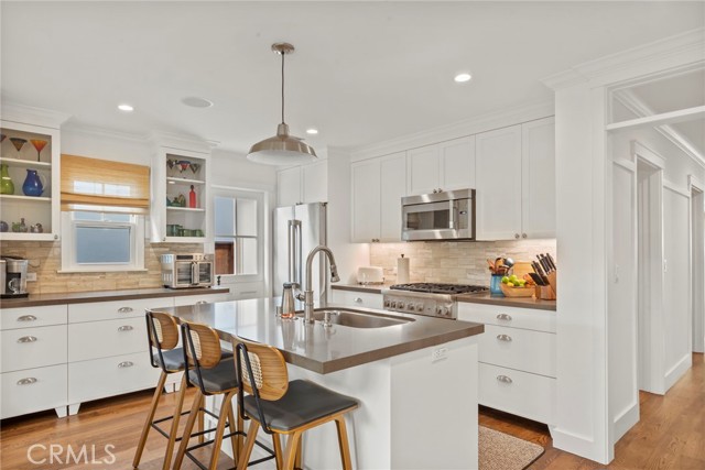 Welcome to this absolutely immaculate single level home in the Hermosa Hills. You are greeted with newly landscaped front yard and impressive street presence. Enter into a open living space including your gourmet kitchen with all new appliances and breakfast bar. This home is perfect for entertaining, family dinners and just relaxing in quiet. Sitting on an approximately 5,000sf lot allows for the large enclosed manicured front yard with ocean views, a side patio off the kitchen and private back yard. Enjoy the quiet primary suite with walk-in closet and double vanity bath. Two more large bedrooms, laundry room and bonus room for an office or gym. New finishes throughout include: can lights, light switches, under cabinet lighting, nest thermostat, garage door, washer/dryer, hot water heater and more. The detail is impressive and will be noticed. This house is ready to move right in and make your home! If you're seeking single-level convenience, refined finishes, and indoor-outdoor living just minutes from downtown Hermosa, Pier and beach this is the one.
