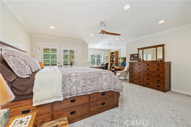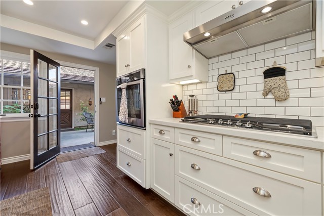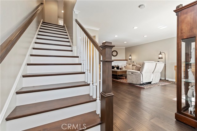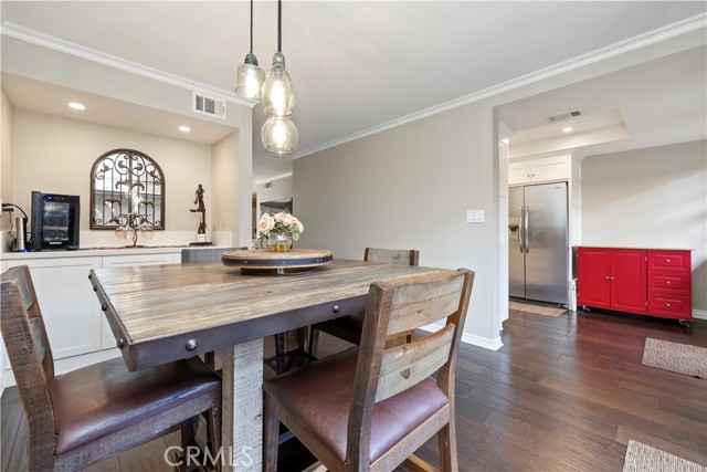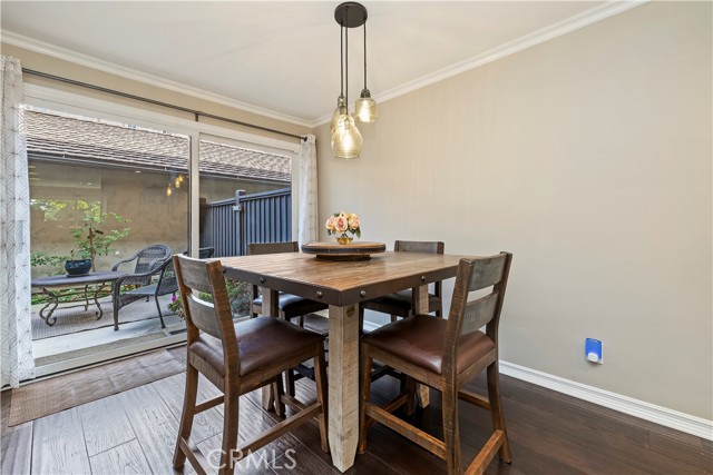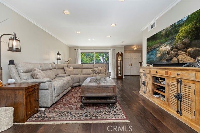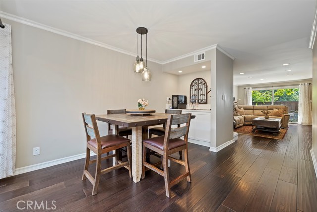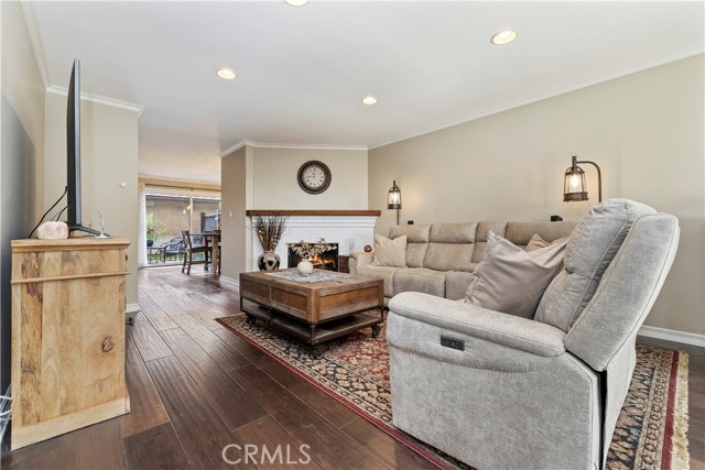 Nestled in the heart of Sierra Madre — "The Village of the Foothills" — this beautifully updated 1,650 square-foot townhome offers a peaceful setting and effortless move-in appeal. Step through elegant double doors into a welcoming living room featuring engineered hardwood floors, crown molding, recessed lighting, and a cozy fireplace — perfect for relaxing or entertaining. The light and bright kitchen boasts crisp white cabinets, quartz countertops, and sleek stainless steel appliances, thoughtfully designed to meet the needs of today's homeowner. Adjacent to the kitchen is the dining area, complete with a dry bar and additional storage. Both the kitchen and dining area open onto the rear private patio via a sliding glass door and a separate French door, offering seamless indoor/outdoor flow for entertaining or dining al fresco. Beyond the rear patio is the finished two-car garage with epoxy flooring. Downstairs, you'll also find an updated powder room and dual coat closets. Upstairs are two spacious bedrooms, each with its own renovated ensuite bath, newer carpeting, generously sized closets, and plantation shutters for added charm and privacy. The expansive primary suite includes a versatile flex space ideal for a home office or fitness area, as well as a private balcony with tranquil skyline and treetop views. Separating the two suites is the convenient upstairs laundry and built-in storage, completing the home's functionality. Located just moments from Sierra Madre's beloved shops, cafes, parks, and hiking trails, this exceptional townhome blends comfort, style, and location — a truly special place to call home that is not to be missed!