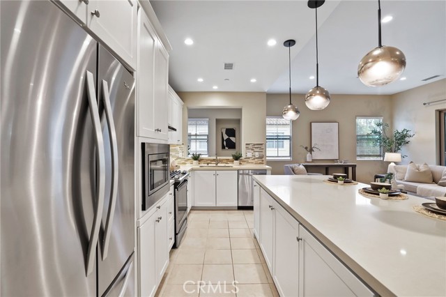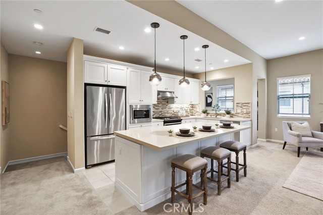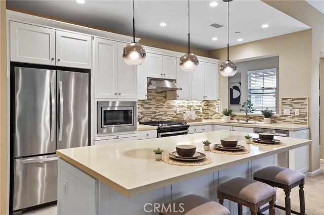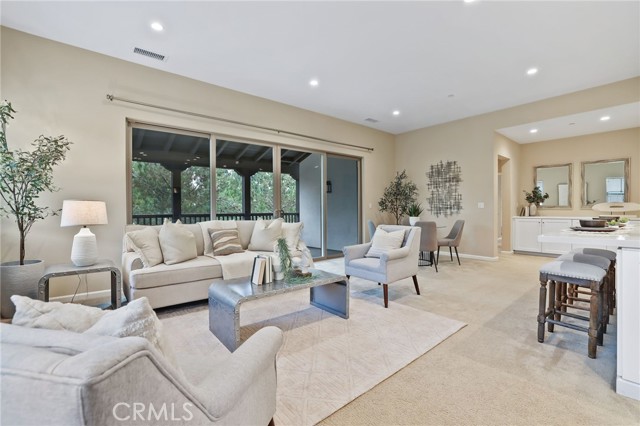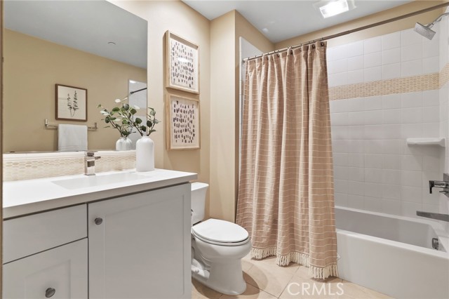 This stylish residence combines comfort, functionality, and natural light throughout. The entry welcomes you with a warm foyer leading upstairs to a bright open concept living area featuring a spacious great room, dining area, and modern kitchen. The gourmet kitchen showcases a large center island, quartz countertops, stainless steel appliances, custom backsplash, and pendant lighting, all flowing seamlessly into the living and dining spaces. A sliding glass door opens to an oversized covered balcony surrounded by greenery, perfect for morning coffee or evening relaxation. A versatile den provides the perfect space for a home office or quiet reading nook. The home offers two comfortable bedrooms and two full bathrooms. The primary suite features multiple windows, a walk-in closet, and a spa-inspired bathroom with dual vanities and a glass-enclosed shower. The guest bedroom is equally inviting, with easy access to a full hallway bath. Eastwood Community is one of Irvines most popular Villages. Walk to acclaimed Eastwood Elementary School located within the Village, easy access to Jeffrey Open Space Trail, and Resort Style amenities for swim, play and picnic. Fantastic Walkability: Enjoy shopping and Dining at nearby Cypress Village Center, Woodbury Town Center, Orchard Hills, or Irvine Spectrum, all just minutes away. Easy access to freeway.