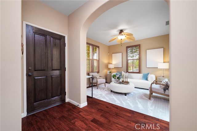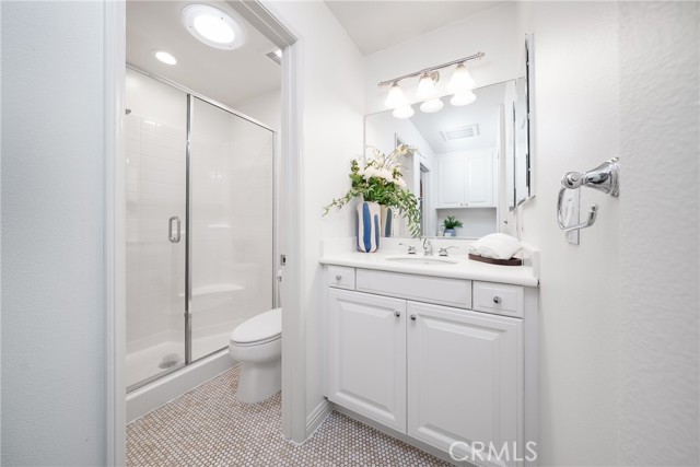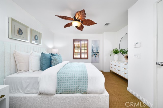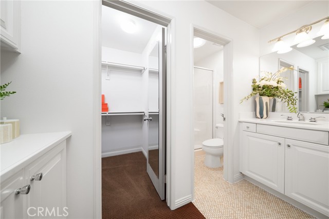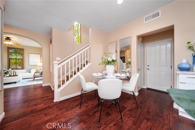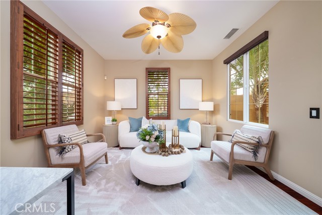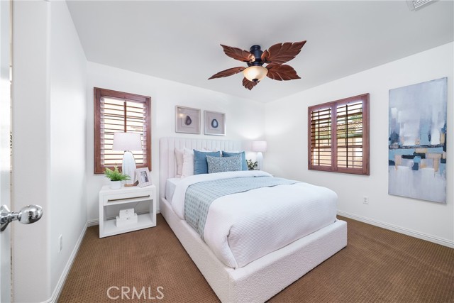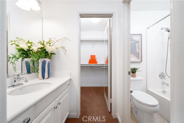 Beautiful Corner Lot Home with Dual Primary Suites in Woodbury, one of the most desirable communities in Irvine. This stunning corner lot home radiates pride of ownership throughout and offers an exceptional blend of comfort, style, and quality upgrades. Featuring two primary suites, each complete with full showers and a solar tube in the primary bath with built in night light and spacious walk-in closets. This thoughtfully remodeled residence provides the perfect balance of luxury and functionality with spectacular views of the corner lot from almost every room. The first floor showcases beautiful Acacia hardwood flooring, while the second floor is complimented by soft Berber carpet. The remodeled kitchen is a true showpiece, featuring quartz countertops with a full-height backsplash, high-gloss white laminate cabinets with premium hardware, LED under-cabinet lighting with adjustable color settings, and modern conveniences such as a pull-out trash system, Super Susan tray storage, double knife drawer, new Kohler pull-down gooseneck faucet, Kraus stainless steel sink with rounded corners, and high end Samsung Bespoke dishwasher, refrigerator and microwave. A large walk-in pantry is located just off the kitchen, offering ample storage space. Additional home features include ceiling fans, window treatments that include Bass wood shutters, roller shades and woven blinds. as well as PEX piping throughout, new water heater, Brondell bidet systems in both primary suites with Kohler showerheads, Kohler hardware throughout the home including all faucets with metal drains and downstairs bathroom has a comfort high Kohler toilet. Technology upgrades abound, including hardwiring for internet (Google Fiber) in the great room, master bedroom and kitchen, as well as a TV wall mount in the great room, a hardwired security system, and a wireless garage keypad. The outdoor stone and pebble patio provides a peaceful, low-maintenance retreat complete with a gas BBQ outlet, Weber grill, and lush Triangle Palm and Ocotillo plants. Some of the energy-efficiencies include Milgard windows, fiberglass insulation between floors, and a roof equipped with a radiant heat barrier for added efficiency. This home truly combines thoughtful design, modern comfort, and timeless appeal — ready for you to move in and enjoy!