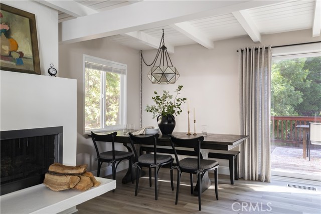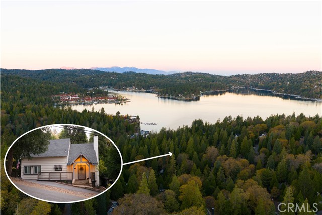 In the heart of the highly desired Palisades neighborhood, this storybook Lake Arrowhead cottage blends charm, style, and an unbeatable location. Featuring a level driveway with true level entry, the home provides rare, easy access for all seasons. Inside, the home feels warm and thoughtfully curated, with beamed ceilings, a classic stone fireplace, and large windows framing the surrounding forest. Light pours into the kitchen and dining areas, creating a bright, inviting setting for everyday living and entertaining. All three bedrooms are located upstairs, along with a bonus loft ideal for a kids' corner, office space, or extra sleeping area. The outdoor space is a highlight, with the sale including an additional parcel that brings the total lot size to 9,047 square feet. Together, the combined lots create a spacious, woodsy setting with a gentle slope that makes for a great sled run in the winter, and a seasonal stream that runs between the parcels, adding to the natural mountain feel. Just a short walk to the lake and ALA trail and minutes from Lake Arrowhead Village, this location is one of the most coveted in town. Charming, accessible, beautifully updated, comes with lake rights, and set in one of Lake Arrowhead's most iconic neighborhoods, this is mountain living in its purest form.
