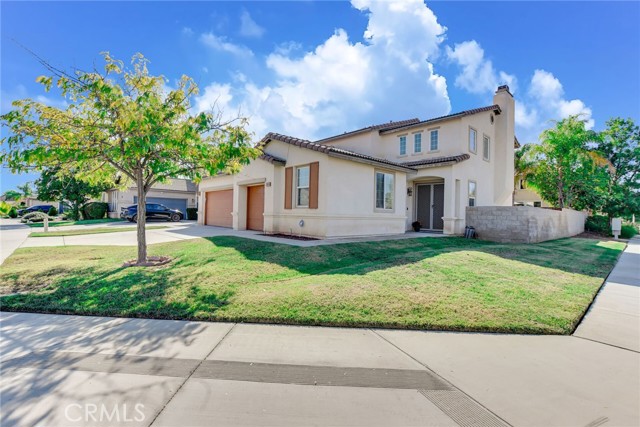 You found it! Welcome Home to this very spacious 4-bed/3-bath beauty that offers comfort, function, and versatility at an affordable price. Situated on a large corner lot with no HOA, this home combines thoughtful layout design inside and out. Step into an open floor where the kitchen, dining, and living areas flow seamlessly together. The kitchen features an abundance of cabinets, a walk-in pantry, and a large center island with seating for 4 – 6 people, perfect for casual meals and everyday connection. Natural light fills the home through well-placed windows, warming fireplace in the family room enhanced by window shutters in the living and main suite areas. Full bed/bath downstairs provide convenience for guests or extended family. Office built-in at downstairs hall. Upstairs, the large owner's suite offers comfort, with a spacious walk-in closet and an en-suite bath featuring a soaking tub and separate shower area. You'll find plenty of storage throughout, including a generous closet under the stairs, built-in desks and linen storage. The laundry room with sink, folding area and cabinets will make organization effortless. All floors are tile or laminate (no carpet) for easy care and clean look. Outside, a full-length covered patio extends across the back of the home, creating an ideal space for outdoor living. The backyard is designed for low-maintenance enjoyment with concrete areas and amazing side-to-side patio cover. 3-car garage and neutral custom colors complete the picture! This gorgeous home is waiting for you! make an appointment today!