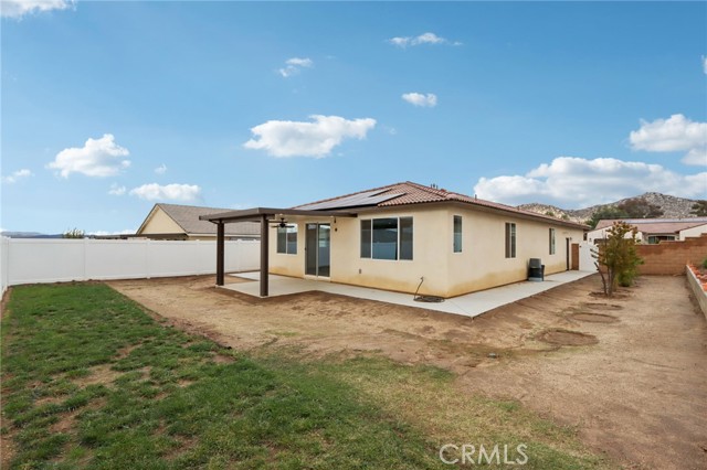 Beautiful Curb Appeal & Low-Maintenance Landscaping Welcome You Home to this bright and open residence offering a spacious floorplan, scenic hillside views and no HOA. Go inside to an open-concept layout that flows seamlessly from the living area to the dining space and kitchen. The well-appointed kitchen features granite countertops, a center island with bar seating, plentiful cabinetry, and a convenient pantry — ideal for meal prep and entertaining. The private primary suite offers a peaceful retreat, complete with a dual-sink vanity, a relaxing soaking tub, separate shower, and a generous walk-in closet. Additional bedrooms are well-sized, providing plenty of room for family, guests, or a home office. Enjoy the convenience of an attached 2-car garage, dedicated laundry room, and tankless water heater. A leased solar system adds energy efficiency and cost savings. Outside is an expansive backyard, featuring a covered patio with a ceiling fan and beautiful views of the surrounding hills — perfect for outdoor dining, relaxation, and year-round enjoyment. Located close to schools, markets, dining options, and everyday conveniences, this home offers the ideal blend of comfort, style, and location.