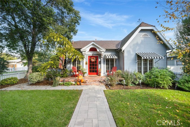 An eclectic Anaheim cottage with great property tax savings w/ The Mill's Act program & potential supplemental rental income. Think English Tudor meets French countryside — all wrapped into a 1920s Pacific Ready-Cut Home, shipped by train, assembled like a life-size kit, and adored for nearly 100 years. The original bones steal the show: classic double-hung sash windows, charming casement windows, true 1920s wood floors, picture rails, and a storybook built-in dining buffet that feels straight out of a vintage film reel. The kitchen? Still rocking its adorable breakfast nook, the kind that demands lazy mornings and something warm in a mug. A thoughtful 12x12 addition brings modern ease with a spacious bathroom + walk-in closet, blended effortlessly into the home's historic architecture. A white picket fence frames the lush, mature landscaping — pure cottage-core — but the backyard shifts into entertainer mode fast: a two-tiered deck, double-sided fireplace, firepit lounge, pergola, and a fully outfitted outdoor kitchen (BBQ, fridge, bar seating, the works). It's a whole vibe. In the rear: a beautiful 752 sq ft, oversized, 2 car garage topped with a 715 sq ft ADU that feels like a European guest retreat. One bedroom, full kitchen, split A/C + heat, storage, privacy — ideal for guests, renters, creatives, or the person in your life who "just needs their own space." Could possibly create an additional ADU directly below the current ADU and still have space to park cars. It already has a separate entrance. And the historic cherry on top: the Mills Act. The next steward inherits wonderfully low property taxes in exchange for keeping this gem exactly what it already is — plaque-worthy. Blocks from Center City Anaheim, artisan dining, neighborhood bars, shops, the library, the post office — and yes, Disneyland close enough to add a hint of magic to the night air. A rare blend of whimsy, history, craftsmanship, and personality. This cottage doesn't just stand out — it stands in its own era.