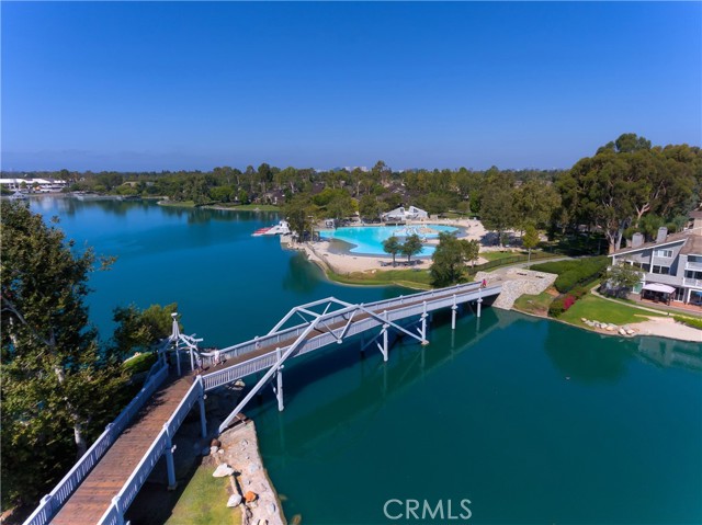 A rare jewel single-story home is one of the most beautiful on the market this year! Freshly painted inside and out, it boasts an airy, modern feel thanks to opened walls and high ceilings. Warm and inviting Boho style with natural cherry hardwood throughout. The home is surrounded by a private wrap-around garden and patio-an unusually large side yard. The interior was re-designed in 2013 by an exceptional finish carpenter with great attention to detail and smooth plaster walls and ceilings.. Dramatic high ceilings, square corners, modern baseboards, and dramatic columns give the Ashford design by Cark Akins its timeless contemporary look. Slate and wide-plank hardwood floors run throughout with a touch a slate in the entryway/foyer. The spacious kitchen dazzles with abundant storage, quartz counters, and thoughtful custom details, along with premium appliances - a Samsung French door fridge, Whirlpool dishwasher, Frigidaire dual wall ovens, and a 5-burner gas cooktop. The slate fireplace has both gas logs and may burn wood and is enhanced with built-in cherry shelves and bookcases. The "Great Room" is the perfect place to relax with garden views from wide windows and doors. Custom dual pane sliding doors open to the private patio. Both bathrooms have been remodeled with stone an quartz including an over-sized walk-in shower in the primary suite. Custom lighting has been added throughout. The garage has been finished by adding: epoxy floor, smooth walls, storage cabinets, a sectional roll-up door, and a custom attic above. Located in the picturesque Pinewood neighborhood — famous for its winding road and magnificent trees — residents enjoy a neighborhood pool, jacuzzi, park, volleyball court, and picnic area in the center. With festive holiday decorations and friendly gatherings, it's a wonderful place to make friends and truly feel at home. The Woodbridge Village Association has recreation amenities that are unmatched in their breadth and scope when compared to similar private Homeowner Associations. The amenities include 2 landmark lakes with docks, 2 beach lagoons, 22 pools, 16 spas, 13 waders, 24 tennis courts, a splash pad, numerous parks with play equipment, volleyball courts, a big wheel park, horseshoe facilities, a fitness course, and much, much more. All told, the Association owns and operates 41 recreational facilities. The Irvine unified School District is one of the best in the Nation. Woodbridge is a wonderful place to call Home!