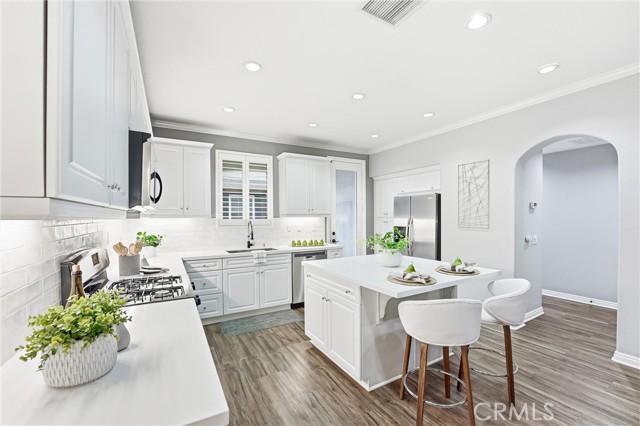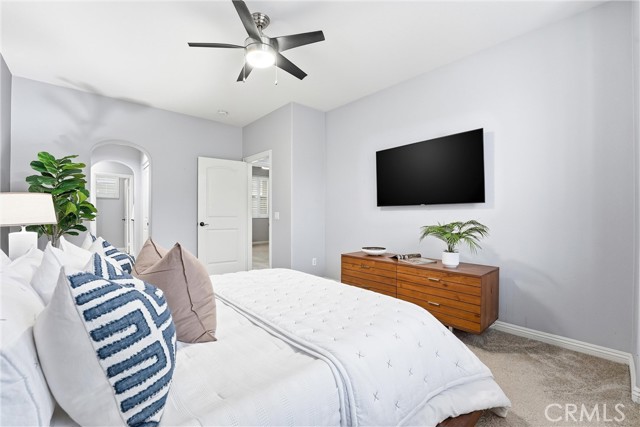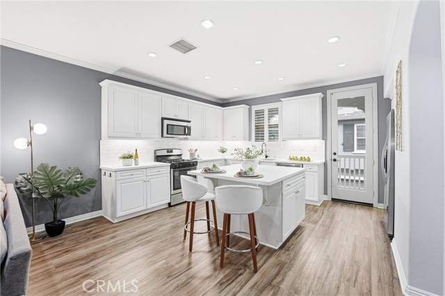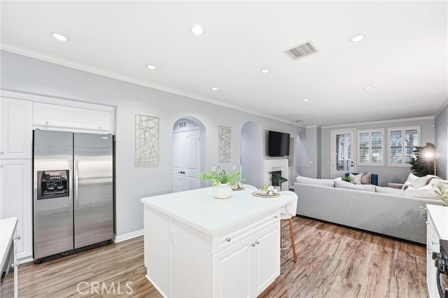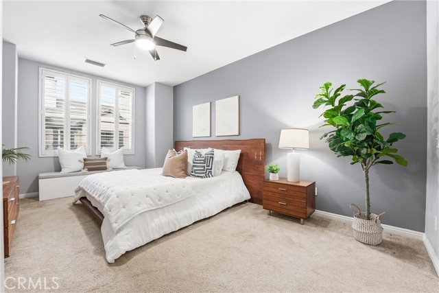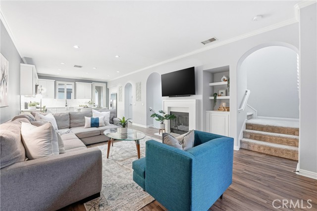 Welcome to 755 S Kroeger St, a thoughtfully designed three-story townhome offering a flexible layout, modern finishes, and a prime location near the Anaheim Packing District. One of the home's standout features is the ground-floor bedroom with a full bathroom, ideal for guests, multigenerational living, or a private home office. Direct access to the attached two-car garage adds everyday convenience rarely found at this price point. The second level is the heart of the home, featuring a bright, open-concept living space designed for both daily living and entertaining. The kitchen centers around a large quartz island and includes white cabinetry, stainless steel appliances, and a classic subway tile backsplash. The kitchen flows seamlessly into the dining and living areas, highlighted by wood-style flooring, plantation shutters, and abundant natural light. A conveniently located half bath and laundry closet complete this level. Upstairs, the spacious primary suite provides a comfortable retreat with an en suite bathroom, while the third bedroom offers additional flexibility for work-from-home needs, guests, or creative use. The home has been thoughtfully curated with a clean, modern aesthetic that feels both current and timeless. Outdoor spaces include a welcoming front porch and a second-floor balcony, perfect for morning coffee or winding down at the end of the day. The community offers resort-style amenities including a pool, fitness center, clubhouse, dog park, playground, and walking paths set among lush landscaping. Located just moments from the Anaheim Packing House, Center Street Promenade, local dining, entertainment, and major freeways, this home delivers a lifestyle that balances walkability, comfort, and convenience. Whether you're looking for a versatile floor plan, a low-maintenance lifestyle, or a home that adapts to the way you live today, 755 S Kroeger St is ready for its next owner.