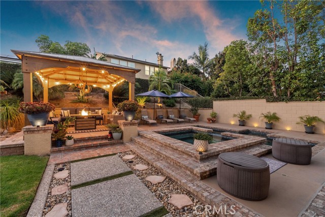 Welcome to Serrano Heights, where the charm of Anaheim Hills meets the convenience of Orange. Tucked on a quiet cul-de-sac, this home blends comfort, style, and an entertainer's dream backyard. Step inside to a warm and inviting floor plan, featuring a formal living and dining room, a bright kitchen with high-end appliances, and a family room with a cozy fireplace and stunning backyard views. Downstairs, you'll find a private guest suite, powder room, and laundry, while upstairs offers a serene primary suite with a sitting area, spa-inspired bath, and a custom walk-in closet. Two additional bedrooms share a Jack and Jill bath, along with a large bonus room perfect for a theater, playroom, or home office. The backyard is an entertainer's dream, complete with a sparkling pool and spa, a covered pergola for outdoor dining, lush lawn, and mature landscaping that creates privacy and a true resort-like setting. Additional highlights include a 3-car tandem garage with great storage, a brand new water heater, and meticulous upkeep throughout the home. Walk to award-winning Serrano Elementary, enjoy nearby hiking trails and rolling hills, and take advantage of the home's central location with easy access to both North and South Orange County, freeways, shopping, and dining. This home is the perfect blend of comfort, lifestyle, and convenience.