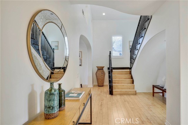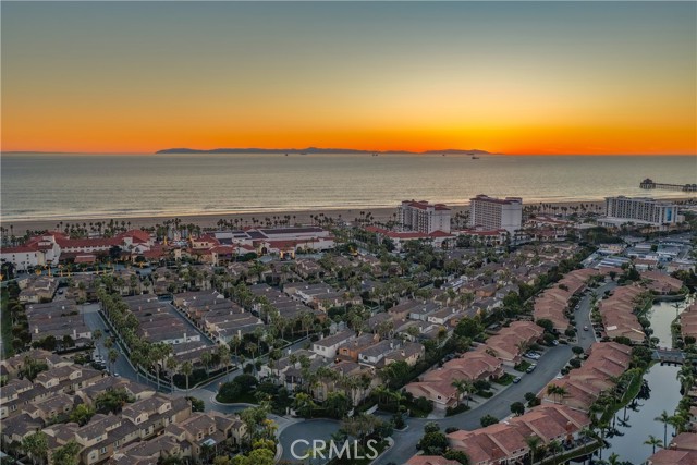 Come join the Coastal Lifestyle at "The Waterfront" townhouses in Downtown Huntington Beach just a few steps from the soft sands and rideable waves of Surf City. This home offers move-in condition luxury living in an extraordinary, gated enclave sitting in the shadow of three luxury 5-Star Hotels: The Grand Hyatt, Waterfront Hilton, and Pacea offer numerous dining options. These upscale resorts along with the vibrant energy of Pacific City and the pier make this one of the best "resort locations" in Southern California. This home is the largest and most coveted model in the community designed for entertaining and relaxation. There are three spacious bedrooms and two-and-one-half elegant baths, spread over 2664 square feet of living area. The formal entry flows seamlessly into multiple expansive living areas, from a cozy sitting nook to a stunning living room anchored by a fireplace. The chef's kitchen features sleek quartz countertops, breakfast bar, artisan cabinetry with glass-front accents, and top-tier stainless steel appliances. The elegant rotunda dining room has a coffered ceiling and graceful architectural details. Upstairs there generous accommodations for the homeowner, family, and guests. There is a loft retreat perfect for quiet mornings or creative pursuits, alongside a dedicated office nook with custom built-ins and a versatile second loft ideal as a library, office, or relaxation space. There is a covered balcony with glass wind barriers — for enjoying ocean breezes. The luxury primary suite features its own fireplace, spacious lounge area, sprawling walk-in closet, and spa like bathroom with freestanding oval soaking tub, dual vanities, and separate glass-enclosed shower. Upscale finishes include: Stone floors with diamond-cut inlays, elegant plank wood flooring, soaring volume ceilings, and thoughtfully integrated modern tech such as a Nest thermostat, and a professional-grade water filtration system… the best feature is enjoyment of a year-round resort lifestyle… every day feels like a living in a vacation getaway. The events in the area are one more amenity: The 4th of July Parade, US Open of Surfing, and Pacific Airshow are just a few of the fun activities which will draw your friends and family to come visit you often at your "Waterfront" beach hous.