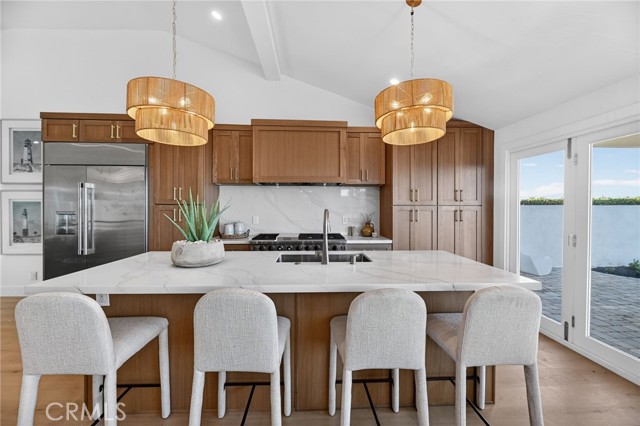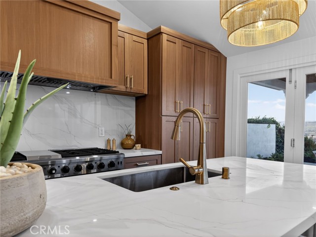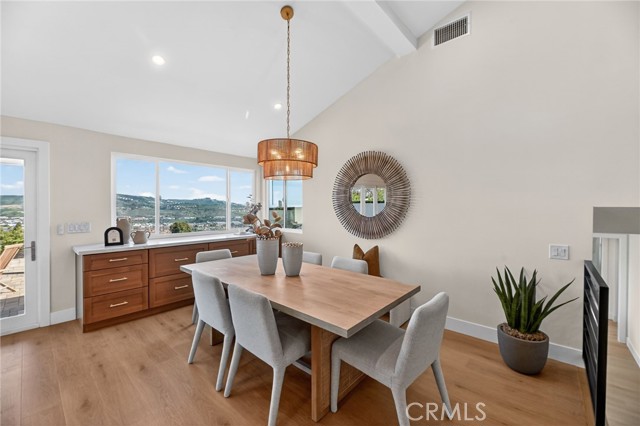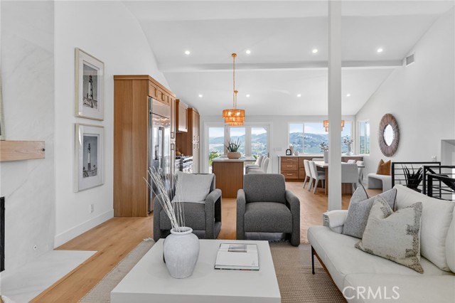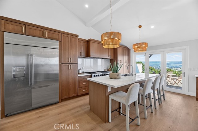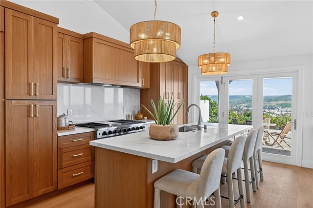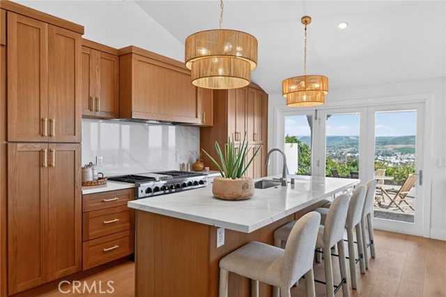 Enjoy breathtaking views of the valley and ocean from the kitchen, dining area, and primary suite (including, bedroom, shower, and walk in closet) in this beautifully remodeled home. Thoughtfully redesigned with a spacious open-concept layout, the living, kitchen, and dining areas flow seamlessly — perfect for both everyday living and entertaining. The living, kitchen, and dining areas are highlighted by soaring ceilings that enhance the home's light-filled, airy feel. The kitchen features a 48 inch professional range, a 48 inch built-in refrgerator, island with bar seating, and a wide-opening accordian door for great access to a spectacular outdoor covered dining area. There is even a drawer microwave in the island hidden out of view! Your new dining area includes built-in storage that is both practical as well as beautiful, topped with matching quartz counter tops. The outdoor dining area has ocean and distance views, a built-in firepit, and features a hardwood-plank ceiling with recessed lighting. The two-level backyard is designed for relaxation, entertaining, and play. The primary suite offers an ocean view balcony and a large, upgraded bathroom featuring a separate spacious walk-in shower and free-standing tub. Additionally there is a huge walk-in closet with built-ins. The top level also includes two additional bedrooms (one has ocean views) and a full hall bath. The lower level features a versatile family room, along with a bedroom and bathroom with a walk-in shower — ideal for guests or multigenerational living. The home also has a 3-car garage and a huge driveway. Take in stunning ocean and valley views from almost everywhere in the home and enjoy true indoor-outdoor California living. Enjoy the upcoming Dana Point Harbor makeover as well as all the watersports, boating, surfing, golfing and other activities that South Orange County has to offer.