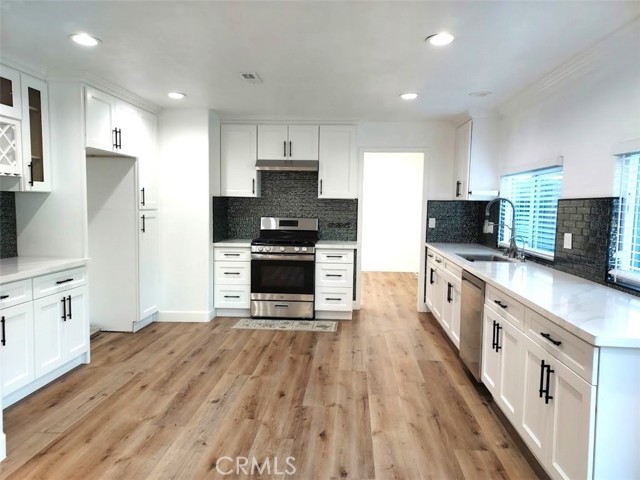 NEW IMPROVED PRICED. Fearture:Four beds (1 converted from garage)threebaths (1 downstairs) ,1,926 living SF, corner lot size 7,200 SF Move in ready with completed remodeled & Upgraded: New floor, new paint, crown molding, recess lights, all new costumed built closets. brand new kitchen new counter, new appliances open concept made house look much more larger. Double door, there is one bathroom and one bedroom ( converted from garage) down stair. Large back yard can build pool or ADU.