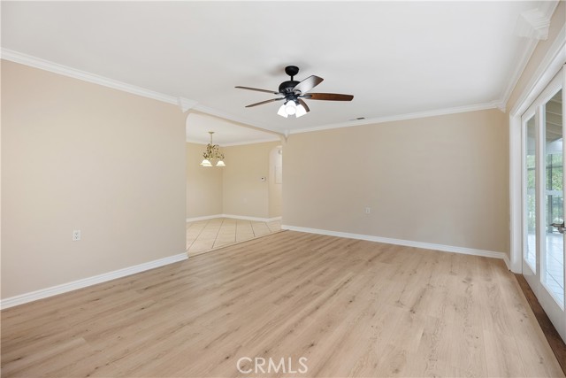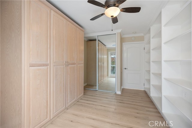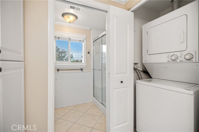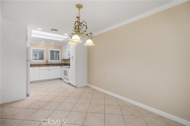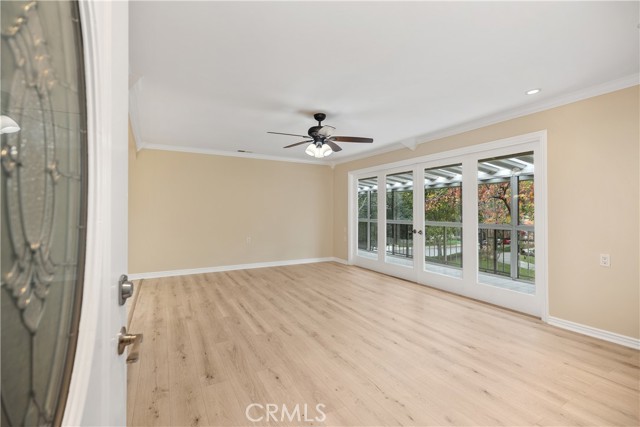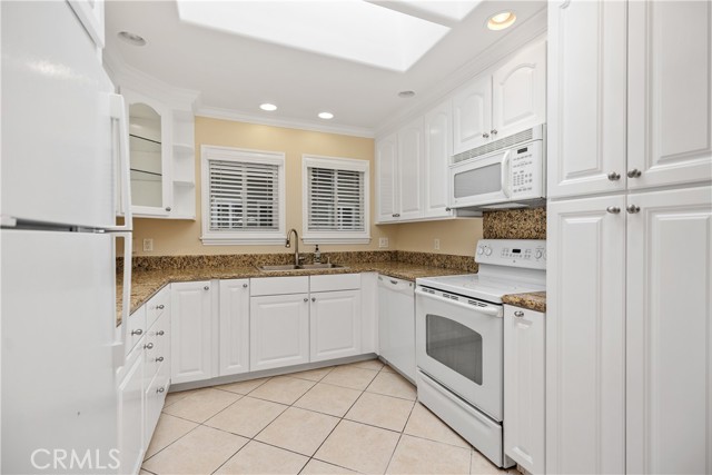YOU WILL NOT WANT TO MISS THIS BEAUTIFUL, POPULAR "CASA LINDA" MODEL. GREAT CURB APPEAL WITH NO STAIRS. Bright and inviting two-bedroom two-bath with an open, lovely treetop outlook and an expansive enclosed balcony that truly lives like an extra room. The living room features smooth ceilings, crown molding, a ceiling fan, and French doors to the balcony. Freshly painted, with new laminate wood floors in the living room and hall, and tile in the kitchen and dining, along with Central Heat and Air and Newer Dual-Pane Windows throughout. The remodeled kitchen is a delight with granite counters, crisp white cabinetry, recessed lighting, and a large skylight that fills the space with sunshine. Beautifully remodeled with exceptional storage, including extra-deep cabinets and clever hidden spaces that keep everything organized and out of sight. A generous dining area sits just off the kitchen for easy entertaining. Both bedrooms are comfortable retreats with ceiling fans. The primary suite offers mirrored wardrobes and an updated bath with a walk-in shower and seat. The guest bedroom has a sliding glass door leading to the enclosed patio to enjoy. Also, a Murphy bed in the bedroom. The bath features a tub-and-shower combination with a skylight. Conveniences include an inside laundry with a stack washer and dryer, smooth ceilings, crown molding, and abundant storage throughout. Add all this to the incredible amenities of Laguna Woods Village, and you have a winning combination. Residents enjoy the 27-hole championship golf course and the 9-hole executive par three course, tennis, pickleball, paddle tennis, bocce, and lawn bowling, two fitness centers, seven clubhouses, five swimming pools, an equestrian center, community gardens, an art studio, and a world-class woodshop, along with more than two hundred clubs and social groups. There is a free bus service throughout the community and to nearby shopping areas. RV owners will appreciate the convenient and economical RV storage area. All of this is set in a secure, guard-gated community about 6 miles from beautiful Laguna Beach. Country Club living at its best. SEE VIRTUAL TOUR. Carport 570 Space 1.