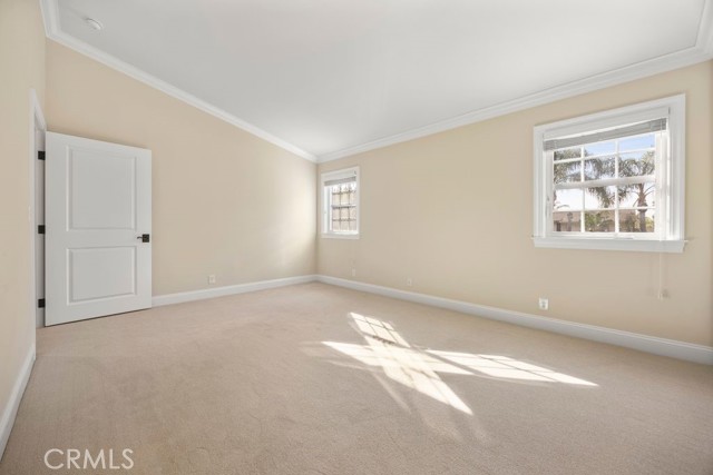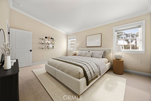 Fine, stately, and timeless, welcome home to a residence of true refinement and quality, nestled into a pride-of-ownership cul-de-sac. 4451 Rainbow Lane presents a rare opportunity in a desirable West Yorba Linda location for a discerning buyer to acquire a bespoke and flawless home. Thoughtfully expanded and remodeled down to the studs in 2013. A striking east-coast architecture greets you and sets the tone for what awaits inside. Classic finishes like brick cladding and wood siding combine to create a timeless and warm elevation. Stepping through a custom entry door, the foyer welcomes you inside and features large scale tile flooring, fine millwork including crown, base and stair banisters. A grand great room is beautifully proportioned with coffered ceilings, window seat and custom cabinets and shelving flanking a custom fireplace. Gracious entertaining will be a hallmark of the dining room with chandelier and a custom built-in buffet with glass fronted display cabinets. Fully remodeled and built with a high level of refinement, the kitchen features solid wood custom built cabinetry, solid surface Corian counters with full height backsplash. A suite of appliances include double ovens, a 5-burner gas cooktop and built-in refrigerator. A walk-in pantry, breakfast bar and a welcoming breakfast nook, that overlooks the pool and spa, complete the kitchen. Adjacent the kitchen is a fully customized home office/craft room, fully finished with dual built-in desks, an ideal space for working from home or for homework after school. Sitting at the rear of the home, the MAIN FLOOR primary suite is a sanctuary space with fine millwork and light fixtures. The en-suite bathroom is remarkably spacious featuring a walk-in shower, dual sinks and two walk in closets, one that is approx. 13 ft by 8 ft. A convenient ‘pool' bathroom has exterior access leading directly to the pool. Upstairs three comfortably sized secondary bedrooms share access to a fully remodeled hall bathroom with dual sink vanity. The original (now 2nd) primary suite features vaulted ceilings and a fully remodeled en-suite bathroom. Outside the best of California living awaits with custom pool and spa, lush lawn and an inviting covered patio with heaters and ceiling fans, also piped for a gas BBQ. Dual HVAC systems, water softener (owned), media closet with iPad control and security system. A 31 panel, solar panel system PPA has been fully pre-paid through 2035, producing on average 13.8 KwH annually.
