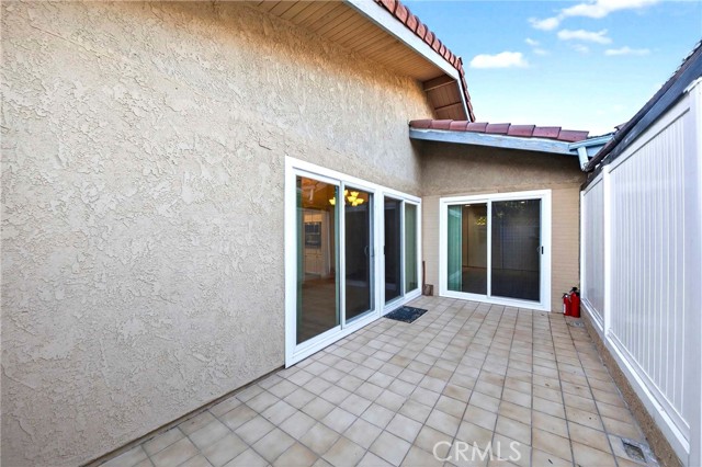 Welcome to this beautifully appointed single-level condominium located in the highly desirable Racquet Club Villas South. Perfectly positioned as a premium end-unit on a coveted corner location, this home offers exceptional privacy, comfort, and convenience. Featuring approximately 1,181 square feet of well-designed living space, this residence includes two spacious bedrooms and two bathrooms with an open, functional floor plan. The light-filled living room showcases vaulted beamed ceilings, a cozy fireplace, and elegant luxury laminate flooring throughout, creating a warm and inviting atmosphere. The galley-style kitchen, highlighted by quartz countertops, overlooks the living area, providing a seamless and engaging space ideal for both everyday living and entertaining. The generously sized primary suite serves as a tranquil retreat, complete with an en-suite bathroom and direct access to the outdoor patio. Enjoy true indoor-outdoor living with multiple sliding glass doors that open to a private patio, perfect for relaxing or hosting gatherings. Additional features include ample storage, and a detached two-car garage. Residents benefit from HOA-covered gas, water, trash service, and common area maintenance, along with close proximity to the clubhouse and community pool. The home is also located within the boundaries of award-winning schools, including Laguna Road Elementary, Parks Junior High, and Sunny Hills High School. Surrounded by parks, hiking trails, and an array of shopping and dining options, this exceptional home offers a refined lifestyle of comfort, convenience, and timeless appeal. This is the lifestyle you've been looking for. Whether as a primary residence or a strategic investment, this exceptional home offers comfort, convenience, and enduring value in one of the community's most desirable settings.