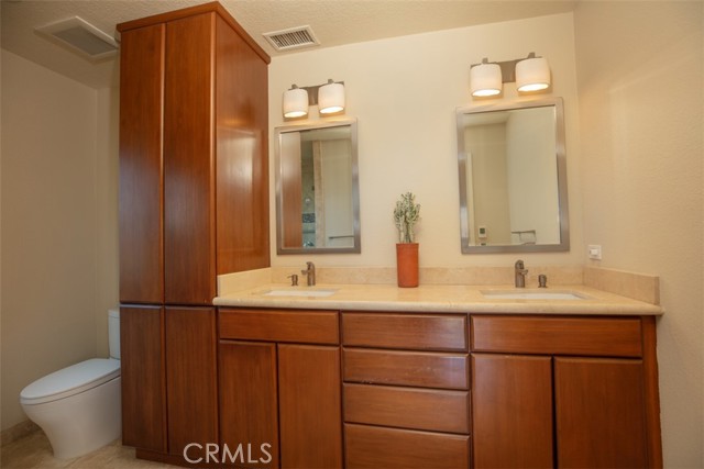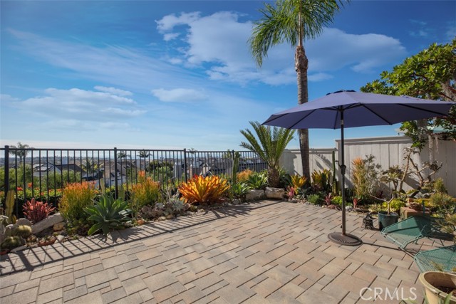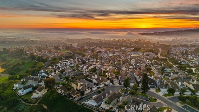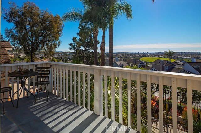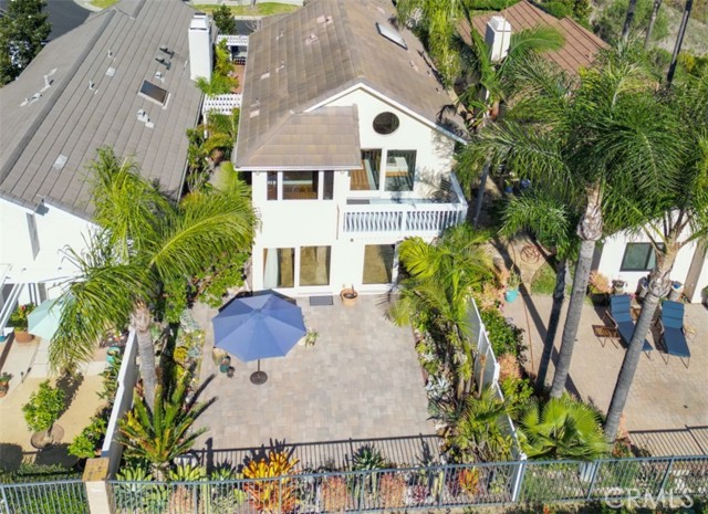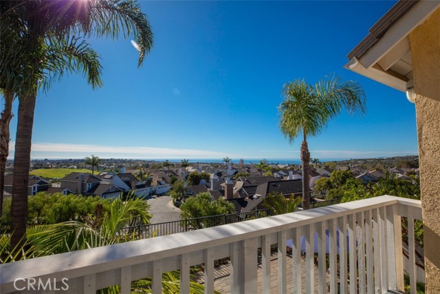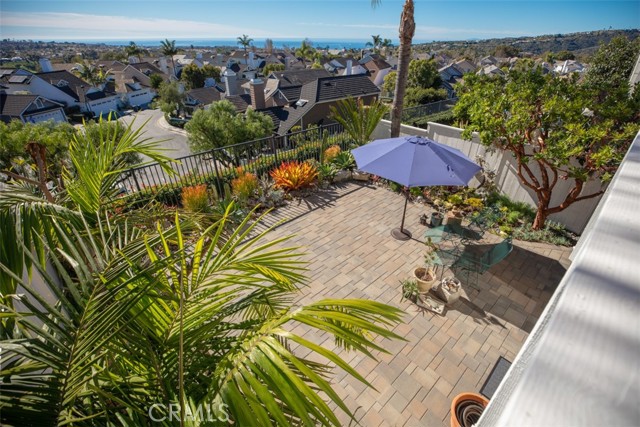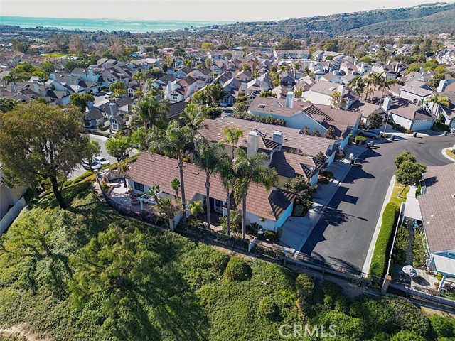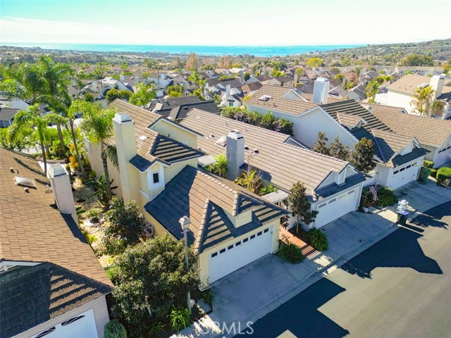 YOUR COASTAL HOME AWAITS. NESTLED IN LAGUNA NIGUEL IN THE PRESTIGIOUS BEACON HILL VILLAGE COMMUNITY this beautiful single family home spans 1,733 square feet on a 3500 sq ft lot with a two-car garage, two bedrooms, office and two-and one-half baths on a quiet cul-de-sac street. Panoramic blue water ocean views and gorgeous sunsets from the kitchen, family room, primary bedroom and backyard as the home sits less than 2 miles from the beach. The kitchen has maple cabinetry, sile-stone countertops, GE Profile refrigerator, Bosch Dishwasher, Thermador cooktop and GE Convection oven, vented hood over the burners and trash compactor. A large island with sitting space, pendant lighting as well as inside laundry area off the kitchen. The primary bedroom has high ceilings, ceiling fan, an upgraded ensuite bathroom with heated floors, walk in closet, ocean view balcony and a connected office space. The second bedroom also has an ensuite bathroom and plenty of storage space and Quartz countertops in both bathrooms. The flooring downstairs is travertine stone and wood flooring throughout the upstairs, plus lots of windows, skylight and wood frame doors to the backyard.. Brick and concrete pavers placed in the side and backyard with a manicured array of low maintenance plants, shrubs and trees. The roof is composite and replaced in 2013. Home has been re-piped with PEX and a new tankless water heater. The garage floor was recently epoxied and there is a pull down for storage above. including newer central AC unit. Close proximity to the coast, walking-bike trail to Waldorf Astoria, Monarch Beach Golf Course, Ritz Carlton and Salt Creek Beach, city parks, shopping, restaurants, and award-winning schools. HOA amenities include six lighted tennis courts & three pools & spas, parks and walking paths. VIDEO LINK IS UP... CLICK THE 360 BUTTON UNDER THE MAP ON THE MAIN PAGE FOR A VIRTUAL TOUR.