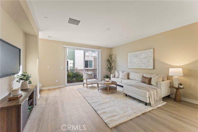 Paid-off solar on roof. No carpet throughout. No Mello-Roos tax. Newly installed waterproof, dent-resistant, pet-friendly wood flooring. Welcome to this modern attached condominium located in the Parker Collection community of Buena Park. Built in 2015 by City Ventures, this California Title 24 – compliant home offers 2 bedrooms plus a den, 2.5 bathrooms, and approximately 1,721 square feet of thoughtfully designed living space across three levels. The first floor includes one bedroom and access to the attached side-by-side two-car garage, which is pre-wired for an electric vehicle charger and offers additional storage space. The second level features the main living area with an open-concept kitchen, living room, and dining area, along with a powder room and a private balcony. The kitchen is appointed with Oasis-color quartz countertops on the counters and island, a 6-inch backsplash, Laguna maple natural wood cabinetry with soft-close drawers and doors, under-cabinet lighting, a 30-inch induction range, stainless steel energy-efficient appliances, and a stainless steel sink with a single-handle pullout faucet. Quartz countertops extend into the powder room and bathrooms. The third level includes two en-suite bedrooms, including the primary suite. The spacious primary bathroom features a walk-in shower, while the secondary bathroom includes a shower-over-tub configuration. All shower and tub walls are fully tiled. Framed mirrors are installed in the primary bathroom and powder room. Kohler fixtures are used in the kitchen and all bathrooms. Additional features include minimum 9-foot ceilings throughout, 2.5-inch casing, 4-inch baseboards, dual-glazed windows with ultraviolet coating for insulation, a Nest thermostat, and an energy-efficient heating and cooling system. The home is equipped with paid-off solar panels with a 25-year product warranty. Community amenities include a swimming pool, tot lot, outdoor BBQ area, and a private gated dog park. Conveniently located within walking distance to The Source and just blocks from Buena Park Downtown and Buena Park Mall, with easy access to the 91 and 5 freeways and proximity to Knott's Berry Farm and Disneyland.