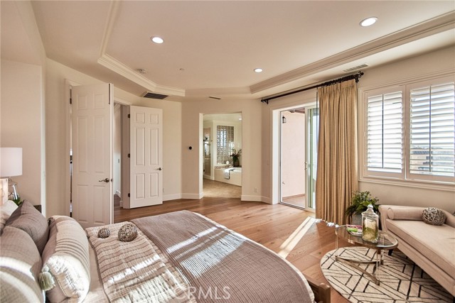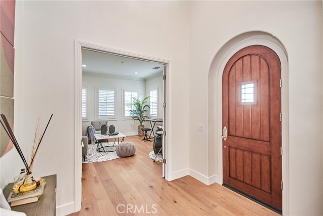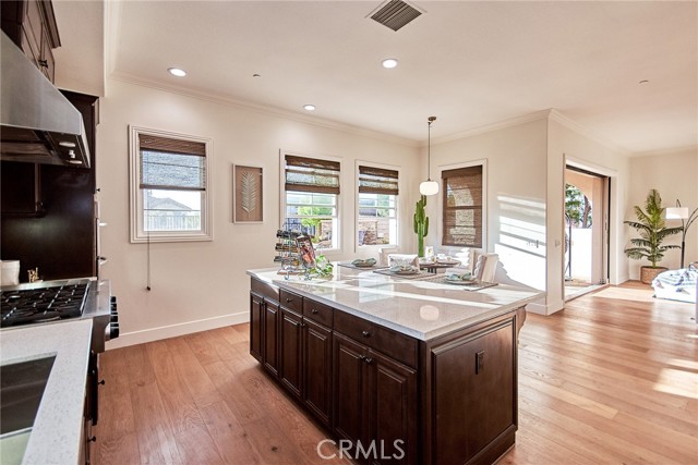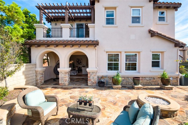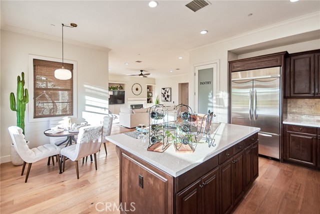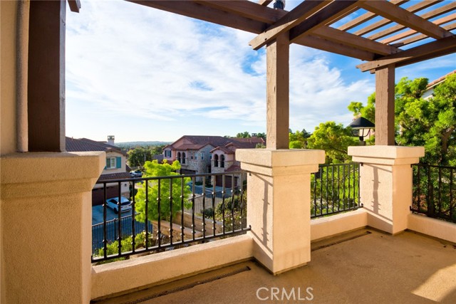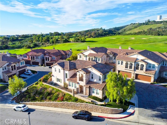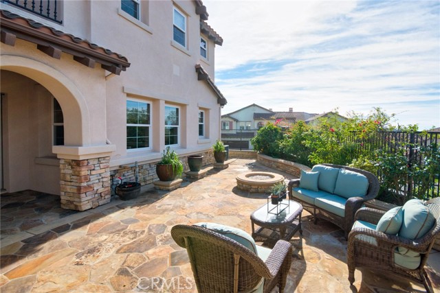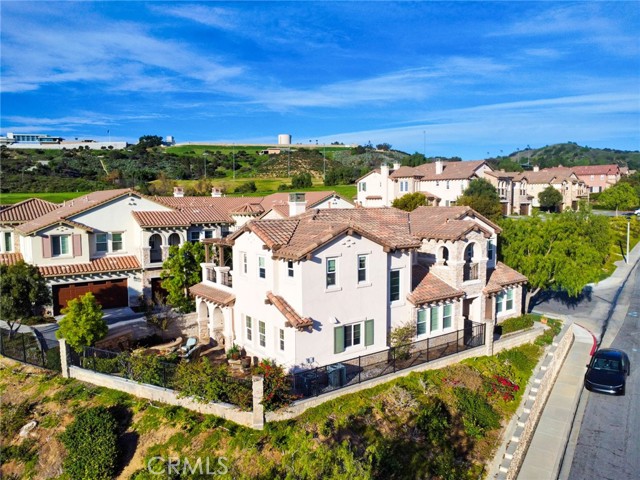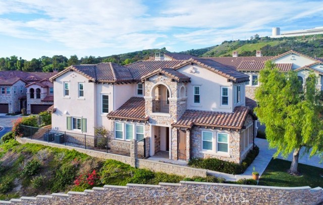 Perched above the highly sought-after Heritage at Vista Del Verde, this detached Toll Brothers residence offers a rare combination of privacy, elevation, and breathtaking views — without shared walls. Positioned on a premium lot, the home captures sweeping views of rolling hills, city lights, and Disneyland fireworks. Inside, the home unfolds with a refined yet inviting atmosphere and has been freshly updated with new interior paint, new wood flooring, and new recessed lighting throughout, presenting in true move-in-ready condition. High ceilings and an open layout create effortless flow between the living spaces, while custom built-ins and a fireplace anchor the living room with warmth and sophistication. The separate dining room is ideal for hosting, and the upgraded chef's kitchen serves as the heart of the home — featuring New Quartz countertops, a generous center island, walk-in pantry, built-in refrigerator, and a professional-grade 6-burner gas cooktop. The main level offers exceptional flexibility with a spacious bonus room suitable for a guest suite, media room, or private office, along with a powder room and dedicated laundry room. Upstairs, the primary suite is a true retreat, complete with a private balcony and panoramic views, dual vanities, soaking tub, walk-in shower, and oversized his-and-hers walk-in closets. Three additional upstairs bedrooms each include their own en-suite bathrooms, providing comfort and privacy for all. Designed for indoor-outdoor living, the backyard is an entertainer's escape — featuring a covered dining area, tranquil fountain, built-in fire pit, and unobstructed scenic views. Thoughtful details such as crown molding, plantation shutters, epoxy-coated garage flooring, and overhead storage further reflect the home's excellent care and meticulous maintenance. Residents enjoy resort-style HOA amenities including a pool, spa, barbecue and picnic areas, front yard maintenance, exterior paint, roof care, and Some of insurance — offering peace of mind and exceptional value. Located moments from Black Gold Golf Club, scenic trails, and top-rated schools, this home delivers elevated living in one of Yorba Linda's most desirable communities.