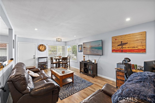 Charming Second Story End Unit Condo with 2 bedrooms and 1 bathroom in Mission Viejo! One of the most updated and move-in ready units in the community that would be a great find for a first time homeowner or investor. The home has been updated with luxury vinyl flooring throughout, along with recessed lighting in the living area and kitchen. The kitchen boasts granite countertops, ample shaker cabinets, and modern hardware. The updated kitchen also opens into the living room for a more spacious feel, with room for a cozy breakfast nook! Make your way to the primary suite which has a large window providing plenty of natural light, a private vanity and sink for convenience of use, and an upgraded walk-in closet. The shared full bathroom has been updated as well, and an upstairs laundry room near the kitchen fits a full-size washer/dryer with plenty of cabinet storage. There is plenty of space on the patio for outdoor dining and relaxation. The home is conveniently just upstairs to a spacious one car garage with overhead storage, and parking includes an assigned space just steps away from the garage. Additionally, enjoy Lake Mission Viejo membership with access to all amenities, a wonderful bonus on top of residing in a centrally located community with pool, wading pool, tot lot, and playground. Nearby award-winning schools and shopping centers plus dining areas. Priced competitively for a quick close.
