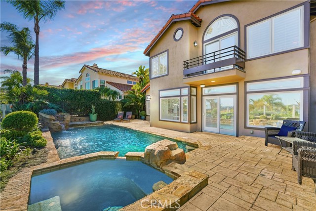 Situated within the Paragon enclave of Niguel Summit, this residence offers an exceptional combination of elevated views, thoughtful design, and effortless indoor outdoor living. Set on a hillside lot, the home captures sweeping views of rolling hills, city lights, and the Pacific Ocean beyond, enjoyed throughout the home. The main level features soaring ceilings, warm wood flooring, and a remodeled staircase with warm wood finishes that adds architectural interest and enhances the home's open, airy feel. The kitchen is well appointed with white cabinetry, granite countertops, a recently added Wolf gas range, KitchenAid double ovens and microwave, a Zephyr recirculating exhaust hood, and a generous kitchen peninsula offering ample countertop space and a seamless connection to the adjacent living areas. Expansive windows and sliding glass doors connect the family room, breakfast nook, and backyard, creating a natural indoor outdoor flow. Designed for both entertaining and relaxation, the private backyard features a resort style pool and spa with waterfall features and mature landscaping, positioned to take in the views. The home offers four bedrooms, including a main level bedroom with a full bathroom ideal for guests, a home office, or multigenerational living, while upstairs the primary suite provides a serene retreat with elevated outlooks and a spa inspired bathroom with dual vanities, a soaking tub, and a walk in shower, complemented by generously sized secondary bedrooms. Ideally located minutes from world class beaches, coastal trails, and everyday conveniences, the home offers easy access to the Ritz-Carlton and Waldorf Astoria Monarch Beach, Dana Point Harbor, and premier dining, shopping, and resort destinations, with nearby hiking and biking trails, golf courses, and South County beaches completing the coastal Orange County lifestyle.