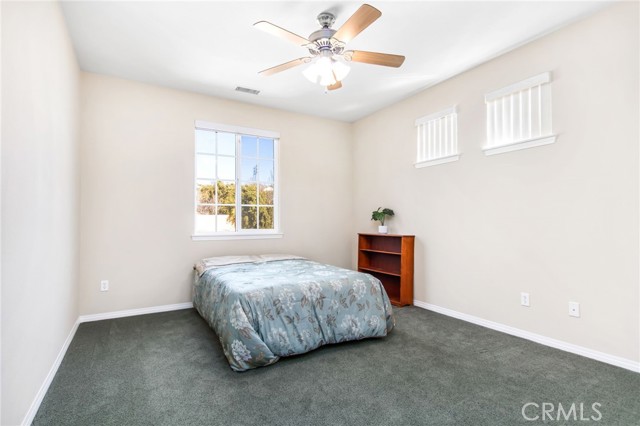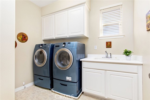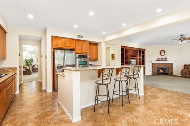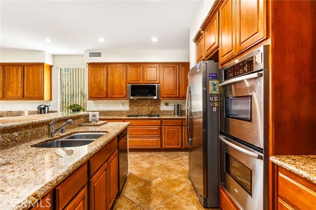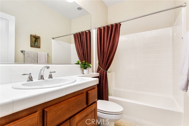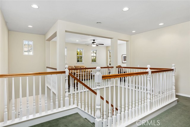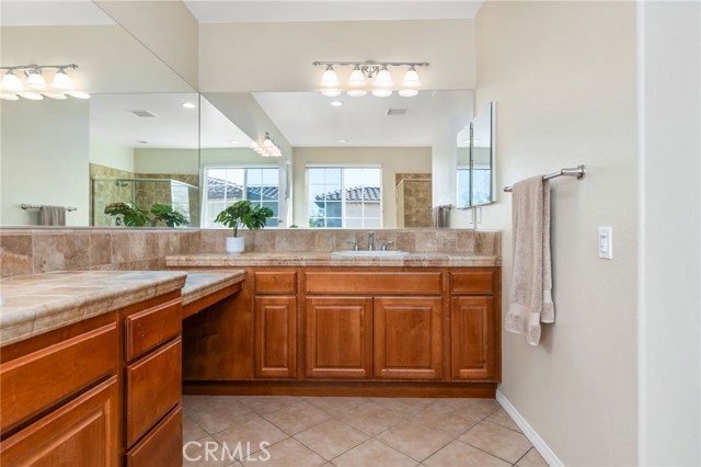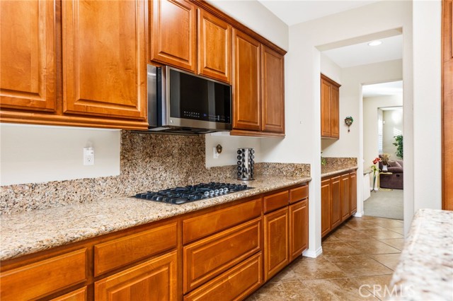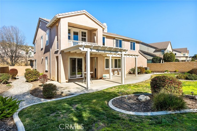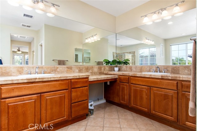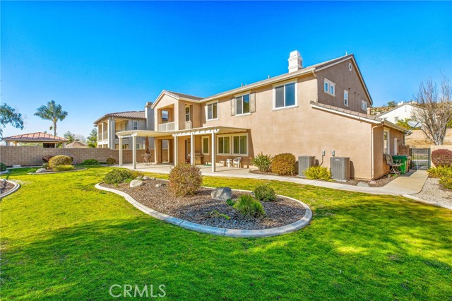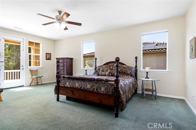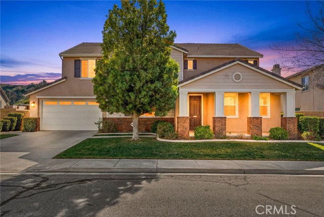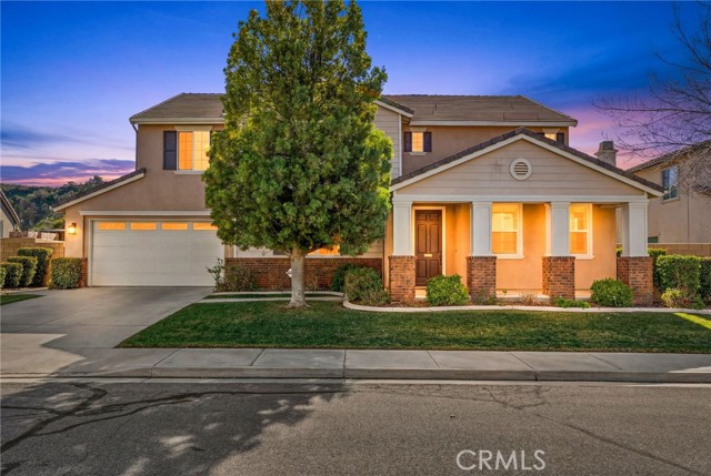 Welcome to an exceptional residence in the highly sought-after Fairway Canyon community, where luxury, space, and panoramic golf course views come together in perfect harmony. Positioned at the end of a quiet cul-de-sac and set directly on the lush green of the Tukwet Canyon Golf Course, this impressive two-story estate offers approximately 4,114 square feet of refined living with six bedrooms and five bathrooms, all framed by breathtaking rolling hill vistas. Step inside to a grand entry adorned with elegant 20-inch diagonal tile flooring that flows into an open, light-filled floor plan enhanced by soaring volume ceilings and plantation shutters throughout. A formal living and dining room welcome you at the front of the home, ideal for entertaining, while the heart of the home unfolds into an expansive great room. The gourmet kitchen is a true showpiece, featuring an oversized island with prep sink, abundant granite countertop space, a five-burner cooktop, stainless steel appliances, double ovens, LED lighting, and a newer microwave. A generous Butler's pantry adds even more storage, connecting to the formal dining area. Adjacent to the kitchen, a sunny breakfast nook overlooks the backyard and opens to a spacious family room complete with a cozy fireplace and built-in media center. Designed with flexibility in mind, the main level includes a private bedroom with its own en-suite bath and walk-in closet, perfect for guests or multigenerational living. Throughout the home, the theme is exceptional storage at every turn, both upstairs and down. Upstairs, an open-railing staircase leads to a versatile loft and five additional bedrooms, including an oversized primary suite that feels like a private retreat. Enjoy morning coffee or evening sunsets from your own balcony overlooking the fairway. The primary bath offers dual vanities, a soaking tub, separate tiled shower, and dual closets. Convenience continues with an upstairs laundry room equipped with a sink and extensive upper and lower cabinetry. Ceiling fans throughout and a newer Lennox AC system installed in 2025. Outside, a fully covered patio creates the perfect setting for outdoor dining and relaxation, surrounded by a beautifully landscaped backyard. The four-car tandem garage includes extensive built-in storage and a dedicated workbench area and no solar lease to assume. Pride of ownership is evident in every detail and a rare opportunity you don't want to miss.
