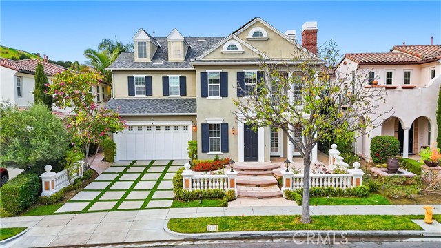Luxurious, extensively renovated residence in Ladera Ranch designed to impress inside and out. Extensively renovated and located on a quiet cul-de-sac in the private Sedona neighborhood, this stunning two-story Colonial offers approximately 4,000 square feet of refined elegance and modern sophistication. This beautiful home offers 5 Bedrooms and a flexible bonus room, and 4.5 Baths. The bright, open layout features 36" x 36" Italian ceramic tile flooring and a dramatic floor-to-ceiling ceramic fireplace feature wall. The gourmet kitchen is a true showpiece, featuring an oversized Quartz island with a full-height backsplash, a pot filler, a custom pantry wall, and premium appliances, including a Wolf freestanding gas range and microwave, complemented by a built-in refrigerator and dishwasher. The kitchen flows seamlessly into the family room, creating an ideal space for everyday living and entertaining. Formal living and dining rooms add to the home's exceptional layout. The main level includes a beautifully appointed bedroom suite and fully remodeled bathrooms, offering flexibility for guests or multi-generational living. The home also features newly completed repiping for added peace of mind. Upstairs, the primary suite is a true retreat with a private balcony, dedicated sitting area, oversized walk-in closet, and a spa-inspired bathroom featuring Travertine flooring, a freestanding soaking tub, and designer Italian ceramic finishes. Three additional well-sized bedrooms complete the upper level. The resort-style backyard is designed for year-round enjoyment, featuring a pool and spa, outdoor fireplace, built-in bar, and lush tropical landscaping — creating a private oasis perfect for both entertaining and everyday relaxation.