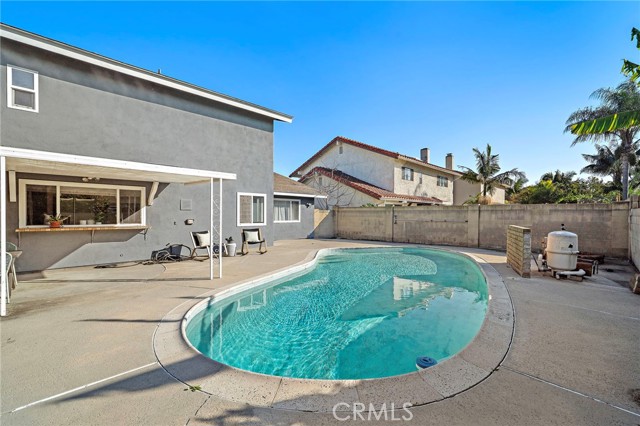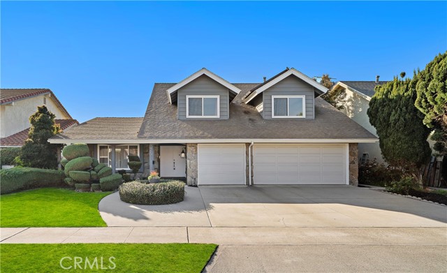 Stunning executive pool home located in the highly sought-after Westhaven community, just steps to Cloverdale Neighborhood Park, on the border of Fountain Valley, close to Mile Square Park, and within a top-ranked school zone. This beautifully maintained 4-bedroom, 2.5-bath residence with a 3-car garage offers 2,722 square feet of gracious, open living space and timeless appeal. Exceptional curb appeal welcomes you with pristine professional landscaping, stone siding, and charming mid-century Cape Cod – inspired architecture highlighted by iconic front dormer windows.?Double entry doors open to a formal foyer leading to an elegant step-down living room and a banquet-size formal dining room — perfect for hosting gatherings and special occasions. The home features dual-pane windows, smooth ceilings, and a blend of wood laminate and tile flooring throughout the main level. The sunlit kitchen showcases a coffered ceiling with recessed lighting, tile countertops, classic white cabinetry, and both a breakfast bar and a charming eat-in breakfast nook. It is open to a warm and inviting family room with stone fireplace, tile flooring, and a full-size wet bar — an ideal space for entertaining. Sliding glass doors lead to the private backyard featuring a sparkling pool, soothing sounds from the custom waterfall, fire ring, large covered patio, generous deck space, and block wall fencing for privacy - its a perfect backyard for tranquility and entertaining. The main level also includes a tastefully appointed half bath, a convenient inside laundry room, and direct access to the 3 car garage. Upstairs, you'll be impressed by the exceptional bedroom sizes. The primary suite and two secondary bedrooms — each with charming dormer windows — offer bonus retreat areas perfect for reading nooks, homework spaces, or home offices, along with walk-in closets. Both the primary and hall bathrooms have been upgraded with granite countertops, and tile flooring, with the hall bath offering dual sinks and a tiled tub/shower combination. Ideally located near shopping, dining, Little Saigon, freeway access, and just a short drive to the beach, this is a rare opportunity to own a classic, well-cared-for home in one of the area's most desirable neighborhoods — a place where memories are made and traditions begin.