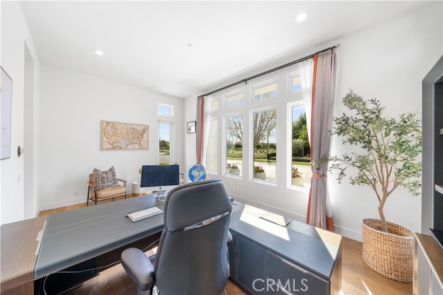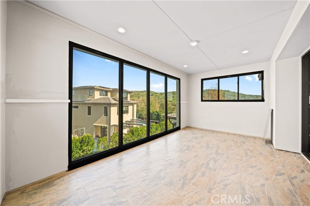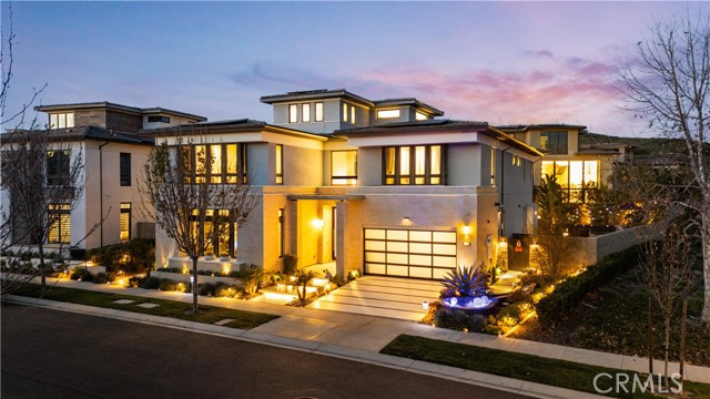 A rare private large corner-lot residence, this high-quality modern home by Toll Brothers is located within Irvine's prestigious 24-hour guard-gated Altair community, offering exceptional craftsmanship, a thoughtfully designed modern floor plan, and elevated California living. Extensively upgraded throughout, every detail has been carefully curated. The home features approximately 5,318 sqft of interior living space, plus two enclosed balconies providing an additional ~500 sqft of versatile usable space(not included in 5318 sqft). Set on a nearly 9,000 sqft lot and bordering a community greenbelt, the backyard offers a rare sense of openness and privacy. A dramatic three-story foyer welcomes you with a full-height Italian stone accent wall and modern chandelier lighting. A private office with custom-built desks included, a guest suite, and a powder room are conveniently located on the main level. The open-concept kitchen showcases floor-to-ceiling cabinetry, premium Wolf appliances, Sub-Zero refrigerator, a marble waterfall island with an extended breakfast table, and walk-in pantry. The light-filled Great Room features three-sided windows and an upgraded linear fireplace, while the formal dining area includes a temperature-controlled wine cooler and opens to the California room with a dual-sided bar and outdoor kitchenette. The second floor hosts four ensuite bedrooms, highlighted by a generous primary suite with a marble bath and a custom California Closets walk-in closet, along with a versatile loft featuring a projection system and an enclosed balcony. The third floor is designed for entertainment and relaxation, offering a bonus room, a full bath, and an enclosed balcony. The resort-style backyard is designed for year-round enjoyment, featuring an outdoor kitchen, motorized shades, a putting green, fruit trees, a sunken fire pit seating area, waterfall features, a heated pool and jacuzzi, and an outdoor shower. The garage is finished with epoxy flooring, custom cabinetry, and a Tesla charger. Additional highlights include fully owned solar panels and a whole-house water purification and soft water system. Altair offers a true resort-style lifestyle with a 7,000-square-foot clubhouse, pools, tennis courts, parks, and fitness facilities, with walkable access to top-rated Irvine Unified School District schools from elementary through high school, and just minutes from Irvine Spectrum and the Great Park.
