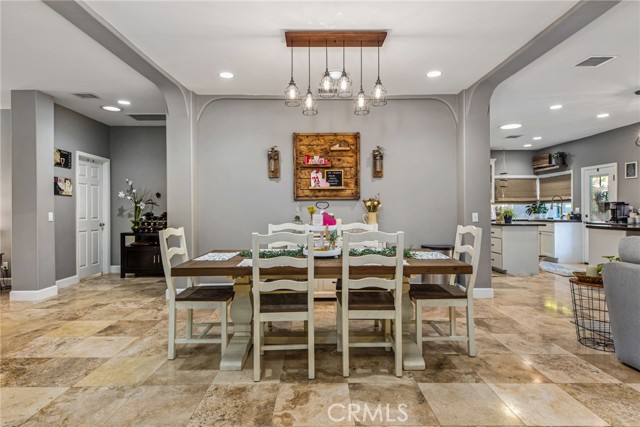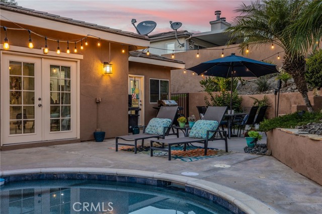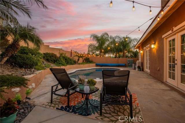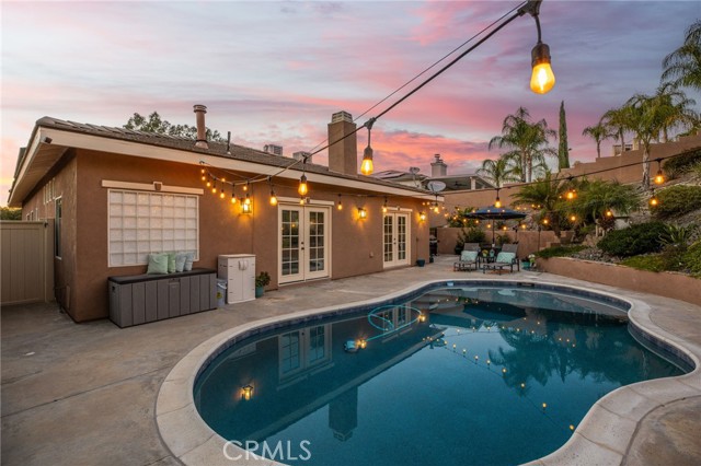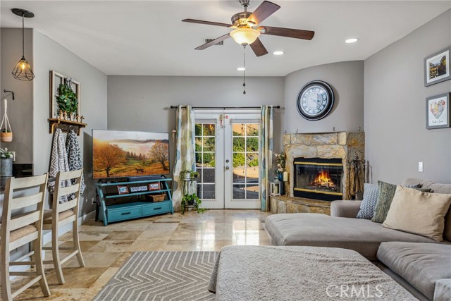 Welcome to this stunning single-story Canyon Lake pool home, offering 4 bedrooms, 3 bathrooms, and approximately 2,400 square feet of beautifully designed living space. Built in 2003, this home immediately impresses with gorgeous curb appeal highlighted by elegant stonework and a well-maintained exterior. Inside, travertine flooring flows seamlessly through the main living areas, complementing the tall ceilings, recessed lighting, and modern fixtures throughout. The expansive open floor plan is ideal for both everyday living and entertaining. The wide kitchen features a large center island, propane cooktop, stone backsplash, under-cabinet lighting, and stainless steel appliances — perfectly positioned to stay connected to the main living spaces. The thoughtfully designed layout offers excellent privacy, with two guest bedrooms connected by a remodeled Jack-and-Jill bathroom on one side of the home, an additional bedroom on the opposite side, and a separate fully remodeled hallway bathroom for guests. A dedicated indoor laundry room adds convenience. The primary suite is a true retreat, featuring backyard access and a beautifully remodeled en-suite bathroom with dual vanities, a separate soaking tub and walk-in shower, and a dual propane fireplace for added luxury. Step outside to your private backyard oasis, complete with a newly finished PebbleTec pool and multiple patio seating areas — perfect for relaxing or entertaining year-round. Additional highlights include paid-off solar with monthly credits, two newer HVAC units, and the ease of all living spaces on one level. A rare blend of style, functionality, and energy efficiency — this Canyon Lake pool home is truly move-in ready.Canyon Lake offers offers a low 1.1% tax base with no Mello Roos bonds, 384 acre waterski/fishing lake, 16 parks most with beaches and playsets, basketball courts, baseball fields, tennis & pickle ball courts, equestrian center, 18 hole golf course, pools, dog park,has golf cart friendly streets, slalom course, ski jump, restaurants, community events and so much more!!! Live life on vacation in Canyon Lake!
