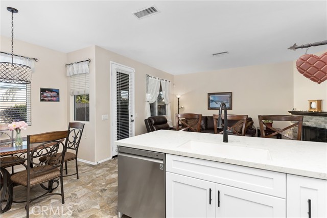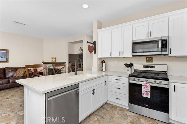 Welcome to Yucaipa's most desirable community, Chapman Heights! This beautifully updated 4-bedroom, 2.5 bath home featuring upgrades galore. Upon entry, you're welcomed by a formal living and dining area with high ceilings that create an open and airy feel. Ceramic tile imported from Spain flows throughout the downstairs, adding durability and style. Past the dining area, the staircase leads to the second level with vinyl wood plank flooring throughout the upstairs. Beneath the stairs is a wraparound storage and coat closet, offering practical and well-designed storage. The kitchen opens to the family room, creating an ideal space for everyday living and entertaining. The family room features a remodeled fireplace, adding character and warmth to the space. The updated kitchen includes new stainless steel appliances with a no-preheat air fry oven, a single-basin sink with pull-down faucet, and custom cabinetry with pull-out pantry drawers, a lazy Susan, a pull-out spice rack, and soft-close drawers and doors. Additional built-in counters and cabinets provide extra storage, complemented by new light fixtures and modern finishes throughout. Upstairs, the primary suite offers a comfortable retreat with natural light, a remodeled bathroom, and a spacious closet. Three additional bedrooms provide flexibility for guests, home office, or family needs. The guest bathroom features a remodeled floor-to-ceiling tiled shower with convenient access to one of the bedrooms. The private backyard includes a covered patio, rose bushes, decorative river rock landscaping, and lemon and lime trees, perfect for outdoor enjoyment. Additional features include a three-car tandem garage with cabinets for extra storage, a brand-new garage door, and a whole-home water softener system. This home offers a great combination of upgrades, space, and functionality in a desirable setting. From upgraded finishes to versatile living spaces, this home checks all the boxes.