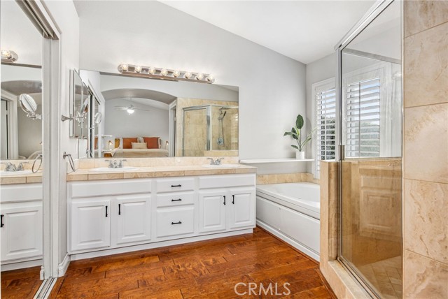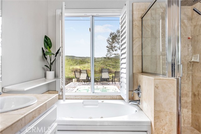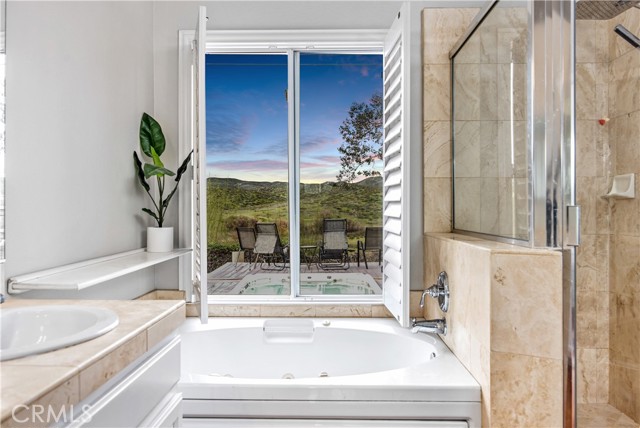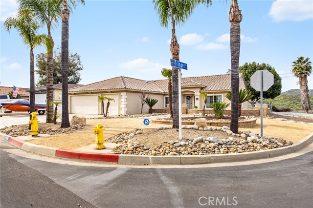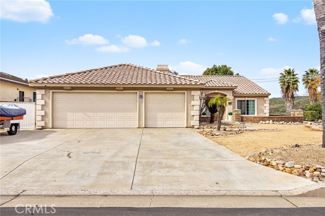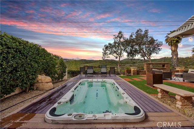 Welcome to this beautifully appointed and immaculately maintained single-story home on a corner lot featuring 3 bedrooms, 2 bathrooms, 2,213 sq ft of spacious living with vaulted ceilings, NEW HVAC, NEW water heater, tons of windows keeping it light and bright, a 3-car garage and huge RV & Boat parking with the opportunity to add more parking (who doesn't need more parking!). The covered entry leads you right into the formal living and dining areas, boasting tall ceilings, wood flooring and an open floor plan. The expansive kitchen is a true centerpiece, featuring granite countertops, an upgraded backsplash, abundant cabinetry with built-in storage solutions, generous prep space, and a center island with bar seating that opens seamlessly to another eating area and family room with a cozy fireplace, ideal for both everyday living and entertaining. The light-filled primary suite has ample room for large furniture, a walk-in closet, dual sinks, jetted bathtub, custom shower and serves as a private retreat with direct backyard access and a built-in swim spa, perfect for unwinding at the end of the day. Both secondary bedrooms are larger than most, and share a hallway bathroom. The spacious indoor laundry room (with a sink), R/O water filtration system, plantation shutters, the ability to hook up propane in the kitchen, and whole house fan complete this fantastic home. The backyard is designed for year-round enjoyment, showcasing unobstructed to-die-for sunset views, a built-in BBQ, large fire pit, view of the jump lagoon and direct access to the jump lagoon, hiking and biking trails through Trigger gate, solar tubs for extra lighting and a water feature that brings the sound of tranquility to your life. End your day with the built in swim spa and forget the world exists. This home delivers comfort, functionality, and a true indoor-outdoor lifestyle! Canyon Lake is a 24 hour guard gated community with a private 525 acre lake, premiere wakeboarding and waterskiing, 18 hole SCGA rated golf course, Lakefront pool and clubhouse, Lakefront RV park, Equestrian center, tennis, basketball & pickleball courts, baseball fields, 4 beaches, 9 parks, an amphitheater, docks, a bicycle pump track, Senior Center, over 40 clubs to join and so much more!