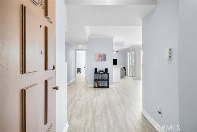 Beautifully remodeled 2-bedroom, 2-bath residence offering 1,786 sq. ft. of refined living space. This exceptional home showcases a brand-new designer kitchen, new flooring, new air conditioning, elegant crown molding, and soaring ceilings that enhance the sense of openness. The expansive, light-filled floor plan creates a warm and inviting ambiance throughout. Enjoy the ease of in-unit laundry, a gated two-car garage, and additional assigned storage. The spacious primary suite features a generous walk-in closet, while the second bedroom includes a custom Murphy bed — ideal for a guest room or stylish home office. Set on a quiet, peaceful street just minutes from charming restaurants and boutique shopping. Residents enjoy resort-style amenities including a sparkling pool, relaxing Jacuzzi, and fully equipped fitness center. The financially strong HOA covers water, trash, earthquake insurance, cable, and internet. The building also offers 24-hour security for added peace of mind. Move-in ready and ideally located — this exceptional opportunity is not to be missed. Motivated seller.