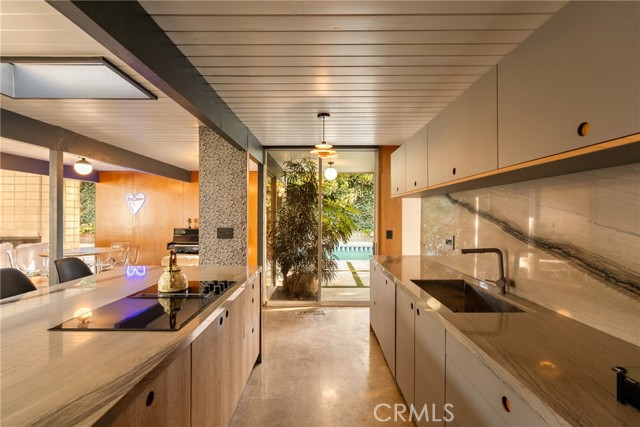 Welcome to 17136 Nanette Street, a beautifully reimagined Eichler residence nestled in the heart of iconic Granada Hills. This rare mid-century gem seamlessly blends classic architectural integrity with modern upgrades, offering five bedrooms and three bathrooms designed for both effortless living and inspired entertaining. True to Eichler design, the home is filled with natural light and an inviting sense of indoor-outdoor flow. Clean lines, open living spaces, and thoughtful updates create a harmonious balance of form and function. The private backyard is a true sanctuary — featuring a sparkling pool framed by lush, mature trees that provide privacy, shade, and a serene, resort-like atmosphere. Whether hosting gatherings or enjoying quiet moments at home, the expansive outdoor space invites year-round enjoyment. Set in one of Granada Hills' most desirable neighborhoods, this property offers the perfect blend of architectural significance, comfort, and Southern California lifestyle living. A rare opportunity to own a remodeled Eichler in a premier location — this is Granada Hills living at its finest.