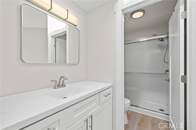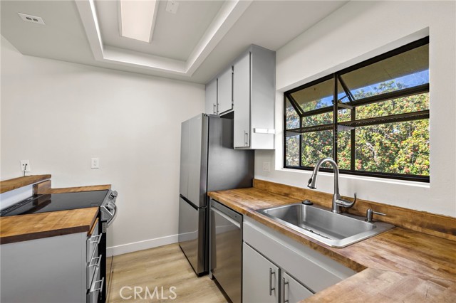 Welcome to this beautifully upgraded upper-level 1 bedroom, 1 bathroom condo located in the heart of Irvine within the highly desirable Lakes Community. This bright and light-filled home features vaulted ceilings and abundant natural light throughout. Extensively updated within the last year, the condo offers luxury vinyl plank flooring, new interior doors, fresh paint, all new stainless steel appliances, a fully renovated bathroom, and a new HVAC system. The kitchen is accented with custom wood-style countertops, adding warmth and character with a unique, designer touch. The spacious bedroom includes a walk-in closet, and the unit comes complete with a washer and dryer for added convenience. Step out onto your private balcony and enjoy peaceful water views, or take advantage of the resort-style HOA amenities including a pool, spa, tennis courts, and scenic walking paths throughout the lakes. Additional highlights include an individual carport and a prime location close to shopping, dining, freeways, and all that Irvine has to offer.