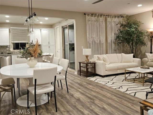 With two spacious primary bedrooms, a large private balcony, and a generous 2.5 car garage, this upgraded end unit in Portola Springs comfort and a well-designed layout. The second floor features an open concept living area with wide plank vinyl flooring, high ceilings, and a seamless flow between the kitchen, dining, living room, and outdoor space. A large kitchen island anchors the heart of the home, surrounded by granite countertops, an upgraded granite backsplash, soft-close cabinetry, and a spacious walk-in pantry for easy, everyday storage. The main primary suite includes dual walk-in closets with built-in shelving, a walk-in shower with modern large-format tile, dual sinks, and granite countertops. The secondary suite features its own full bathroom and plenty of space to unwind or accommodate guests. The laundry room is conveniently located upstairs and includes a washer and dryer. On the ground level, the entry features double-height ceilings and a large storage closet under the staircase. There is direct access to an oversized 2.5 car garage offering space for two vehicles along with extra room for bikes, a workshop, or additional storage. With no one above and only one shared wall, this home provides a sense of privacy in a prime location within Portola Springs. Just steps from resort-style amenities, residents enjoy access to 12 private pools, 20 parks, multiple clubhouses, and scenic trails that connect to Portola Springs Nature Preserve, the Portola Staging Area, and Loma Ridge.