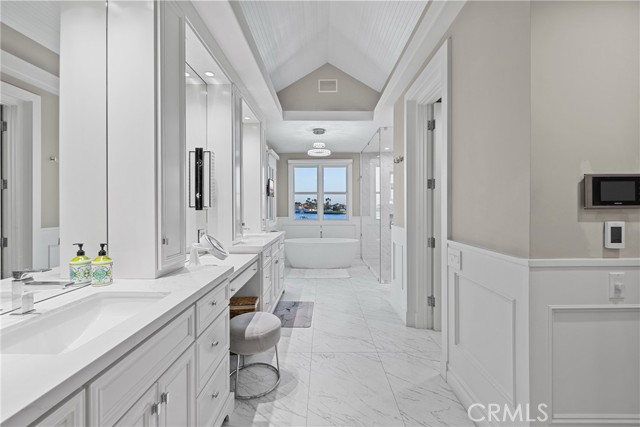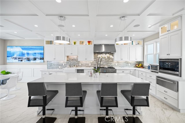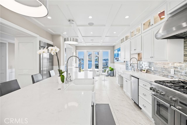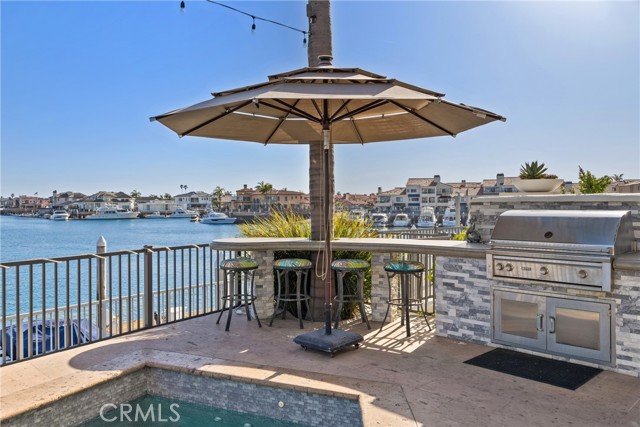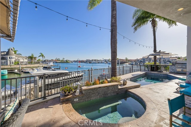 Location, Location, Location! Desirable Point Location in prestigious guarded gate Portofino Cove - Four Channel Views, over 70' water frontage!! Side tie dock that can hold a 65'+ boat and several smaller boats on the inside. Additional docks for kayaks and paddleboards. 10 minute boat travel time to outer harbor/ocean. Custom built from the studs out and expanded in 2018 for additional master closet space and waterfront channel view gym, approx 4400 sq. feet of living area on 6000 sq ft lot, gourmet chef's kitchen has new Thermador 6 burner range, dual Sub Zero refrigerators, Dual sinks, dual dishwashers, ice marker and warming drawer, Carrera flooring, white custom Alder cabinets and large island. Seperate bar area wth extensive shelving, cabinets and refrigerator. Enjoy the sunrise and sunsets throughout the home and especially from your master retreat with sitting area and balcony. The dedicated home theatre features stadium seating with 10' screen and 7.2 surround is sure to entertain. Highly desirable morning and afternoon sun exposure. Office on first floor can be used as a main floor master suite. Completely finished Garage has vehicle lift for additional inside parking. Rare waterfront home that has a private pool, spa, fire pit and Built in BBQ center. Perfect house for entertaining large parties. Existing solar panels are on the tier one syatem that generates monthly electric credits. Smart home has numerous functions that can be controlled from smart phone including pool, spa and surveillance system. Resort living in Huntington Harbour. Truly a turnkey home.