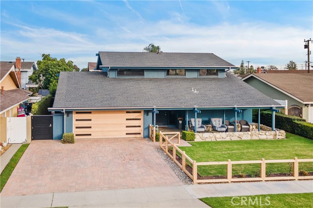 Feel the cool ocean breeze and fall in love with this stunning, top-to-bottom Sol Vista remodel on the Westside of Westminster. Located on arguably the best interior street in the University Tract, this 5 bedroom, 3 bath home, includes a highly desirable bedroom and full bathroom downstairs! Rich wood floors flow effortlessly throughout, and lead to a beautiful, recently remodeled chef's kitchen that opens up to a family room, where a cozy gas fireplace invites you to relax and unwind. Thoughtful, no expense spared upgrades include, new Andersen Renew windows and sliders throughout, new heater (just relocated to the attic) and new high output A/C condenser, upgraded electrical with a 200-amp service panel, custom lighting inside and out, plus new rain gutters, extended west facing front porch for sunset viewing, and an impeccably finished and carpeted garage with a striking wood grain garage door with sleek vertical windows and wall to wall storage. All this and just a short 10-minute drive to the beach and an easy stroll to award-winning Eastwood Elementary School and Bolsa Chica Park. It really doesn't get any better than this!