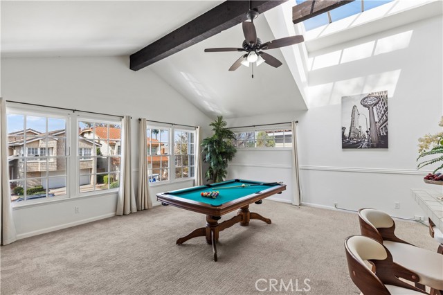 Located in the gated Windstream community of Northwood Village, 13 Recodo offers a rare opportunity to own one of Northwood's most desirable homes. This residence includes four bedrooms, three bathrooms, and an expansive bonus room, totaling 3,264 square feet of well-designed interior space. Filled with natural light and soaring ceilings, the home creates a bright, open living environment throughout. The kitchen features white cabinetry, granite countertops, stainless steel appliances, and a bay window overlooking the backyard. The family room includes built-in cabinetry and a stone-accented fireplace, connecting seamlessly to the backyard. Relax and entertain in your private backyard retreat with a custom pool, spa, and lush surroundings. Situated on a quiet interior street, the home offers privacy and a serene community setting. Upstairs are four well-sized bedrooms and a spacious bonus room. The primary suite includes a sitting area with its own fireplace and a bathroom with tile flooring, mahogany cabinetry, granite countertops, a soaking tub, dual closets, and a skylight. Zoned for top-rated Santiago Hills Elementary and Northwood High School, this home combines a prime location, exceptional living space, and an opportunity you won't want to miss.