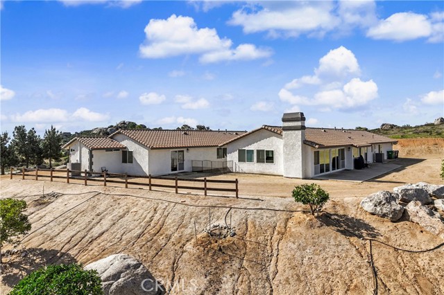Perched high above it all, 31470 Sierra Verde in Homeland delivers panoramic, jaw-dropping views that truly give you that top-of-the-world feeling. From sunrise to sunset, the scenery is the star of the show — and every upgrade in this home was designed to help you enjoy it. Step inside to find brand-new luxury tile flooring throughout, new dual-pane windows, and an oversized sliding glass door that perfectly frames the incredible views while filling the home with natural light. All rooms are generously sized, and every bedroom is oversized with generous closet space, offering comfort and flexibility rarely found. The expansive great room is ideal for gathering and entertaining, complemented by a formal living room, formal dining room, and a dedicated office that can easily serve as a 5th bedroom. This home is thoughtfully upgraded for modern living with paid-off, owned solar panels, a new tankless water heater, and an EV wall charger in the garage. Enjoy the best of country living while being just minutes from shops and other local amenities. Located in the highly desirable, gated community of The Ranch at Sky Mesa, this property offers privacy, convenience, and breathtaking views in one exceptional package. Huge bonus: the property has been professionally graded with brush cleared, allowing it to pass Fire Department inspection and receive a certificate — a major plus for peace of mind and insurance considerations. This isn't just a home — it's a lifestyle, elevated.