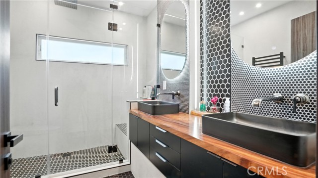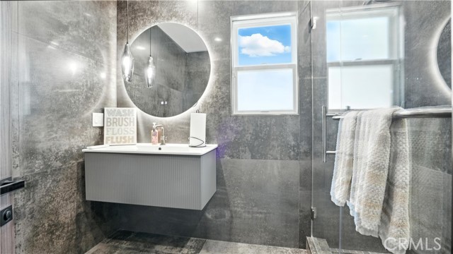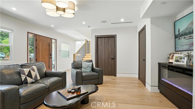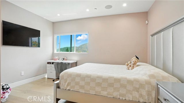 Experience modern luxury in this beautiful 2024 rebuild! Every part of this home has been thoughtfully redesigned with brand-new systems and finishes — roof, plumbing, electrical, flooring, walls, and more — all completed with permits. What began as a 2-bedroom, 2-bath, 1,400 sq ft residence is now 5-bedroom, 4.5-bath, 3,240 square feet offering the perfect blend of style, space, and functionality. Step inside to an open-concept living and dining area that flows into a custom chef's kitchen, featuring a large center island, premium stove, custom-built cabinets, and a sleek hidden-panel refrigerator. Elegant electric fireplaces in both the living and family rooms create warmth and ambiance throughout. The main level includes 2 bedrooms, 2 bathrooms, and a flexible bonus room — ideal for an office, guest room, or potential sixth bedroom. The master bedroom features abundant natural light, a walk-in closet, and a luxurious en-suite bathroom with a rain shower that doubles as a steam room. Upstairs, three spacious bedrooms include a Jack-and-Jill bath, private balconies, and one with its own bath and walk-in closet. Modern comfort defines this home with built-in surround sound, smart toilets, motion-sensor lighting, heated towel racks, a full security system, and three AC units — allowing customized climate control on each level. A whole-house water filtration and softener system ensures the highest water quality. Enjoy serene mountain views from the backyard, which includes a saltwater pool, fruit trees, and hookups ready for future outdoor enhancements. The remodeled garage, finished with insulation and recessed lighting, offers ADU potential (buyers to verify). Located within a top-rated school district, this home delivers exceptional size, luxury, and location in one perfect package. Schedule your private tour today!