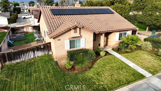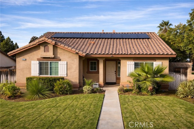 Immaculate single-story home in the desirable city of Grand Terrace. This 4-bedroom, 2-bath residence offers approximately 1,822 sq ft of well-designed living space and true pride of ownership throughout. Recent upgrades include a brand-new A/C unit and updated kitchen appliances. The open floor plan is bright and inviting, perfect for everyday living and entertaining. Situated on a corner lot next to a park, the home features a long driveway with potential RV access, a landscaped yard with solar lighting, epoxy patio flooring, and a storage shed. Additional highlights include spacious bedrooms, dual sinks in both bathrooms, vinyl wood flooring, ceiling fans throughout, a separate laundry room, and an attached 2-car garage with epoxy floors and A/C. Move-in ready and shows beautifully — a must see.