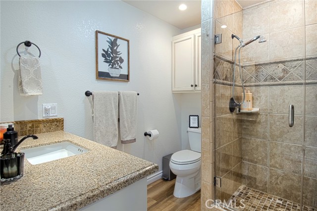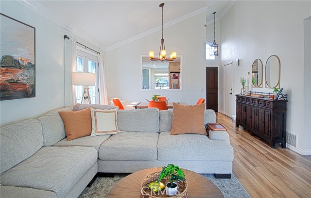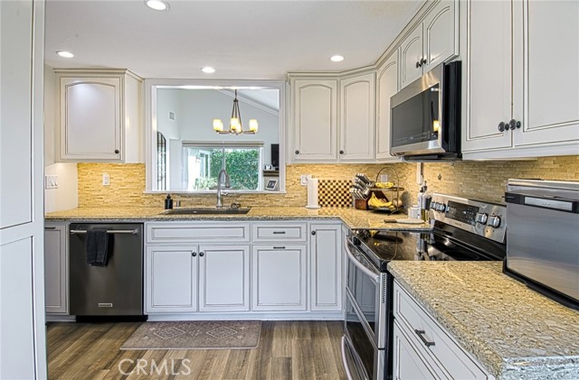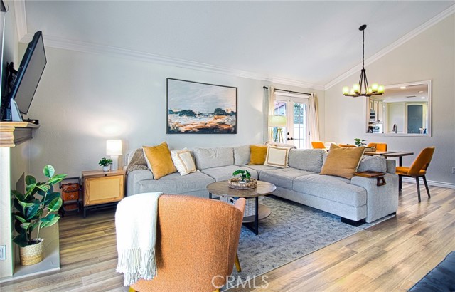 Located in the desirable River Trail community of Orange, this thoughtfully updated single-story home offers quality improvements and comfortable living throughout. Recent enhancements include a newer tile roof, updated kitchen and bathrooms, wood laminate flooring, Lennox HVAC system, and upgraded water heater. The remodeled kitchen features granite countertops, custom soft-close cabinetry, stainless steel appliances including double ovens, a walk-in pantry, and a deep sink with water filtration. The kitchen opens seamlessly to the dining and living areas, highlighted by vaulted ceilings, abundant natural light, and a marble fireplace with wood mantel. The primary suite features a marble shower/tub combination, dual wardrobe closets, and direct access to the private courtyard. Outdoor spaces have been professionally redesigned with pavers, decorative lighting, and an updated sprinkler system. Additional features include an epoxy-coated garage floor, built-in storage cabinetry, and overhead storage with pull-down ladder access. Residents of River Trail enjoy community greenbelts, pool and spa, and proximity to Fletcher Elementary, Cerro Villa Middle School, and Villa Park High School. A well-maintained, move-in ready home in an established neighborhood.