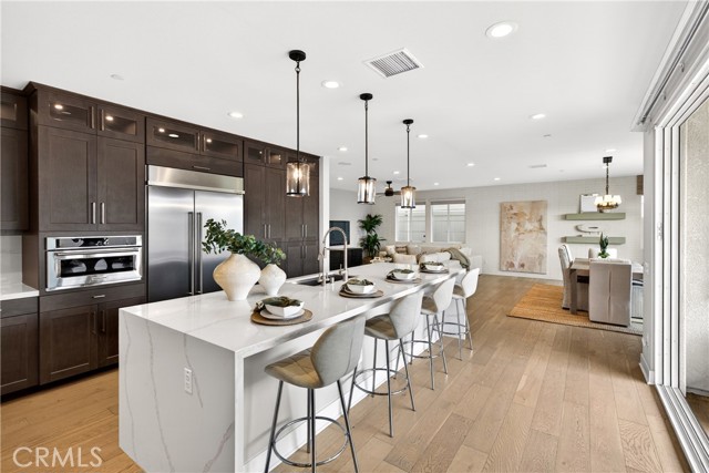PONTE VISTA'S LUXURY ESTATE COLLECTION ORIGINAL MODEL HOME - UNOBSTRUCTED HARBOR & BRIDGE VIEWS - PREMIUM UPGRADES & CUSTOM FINISHES THROUGHOUT - OWNED 16-PANEL 5-KILOWATT SOLAR SYSTEM Ponte Vista is a gated community adjacent to Rancho Palos Verdes. Its luxury estates collection totals just 66 homes. Of those 66, only 21 have the largest floor plan. Of those 21, one was the premier model home. The one used to sell all the others. THIS IS THAT HOME. Five bedrooms, five bathrooms, 3,527 square feet on a 5,448-square-foot lot (BTV). Hardwood flooring throughout. Harbor views that will make you stop and stare. VIEWS & POSITIONING The builder chose this lot for their showcase model home. Unobstructed views of San Pedro Harbor and Vincent Thomas Bridge. Cruise ships docking in the channel. San Gabriel Mountains beyond on clear days. Sunset light across the port. Night illumination from bridge spans and container terminals. KITCHEN & MAIN LEVEL Professional-grade range and double ovens enable simultaneous cooking. Built-in wine fridge. Quartz spans the oversized island and perimeter countertops. Floor-to-ceiling soft-close cabinetry. Multi-panel window sliders retract completely, merging the great room with the covered patio. Thoughtfully landscaped backyard. Main-level guest suite with full bath provides privacy from upstairs sleeping quarters. PRIMARY SUITE & UPPER LEVEL The primary suite spans the home's rear elevation. Dual vanities separate morning routines. Glass-enclosed modern shower and standalone soaking tub. Walk-in closet for seasonal wardrobe rotation. Three additional bedrooms plus a loft for an office, media room, or flexible sleeping space. SYSTEMS & EFFICIENCY 2020 build with modern systems and current technology. The 16-panel, 5-kilowatt solar array was purchased for $23,320, not leased. No monthly solar payments. Tankless water heater. Dual-zone HVAC for independent temperature control between levels. PONTE VISTA AMENITIES Security patrol, heated pool, spa, fitness center, dog park, BBQ area, fire pit, walking trails, low HOA fees. Minutes to beaches, shopping, dining, freeways, and West Harbor waterfront opening in 2026.