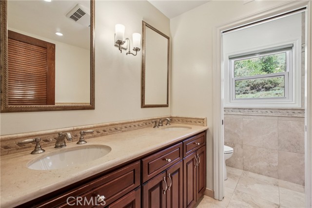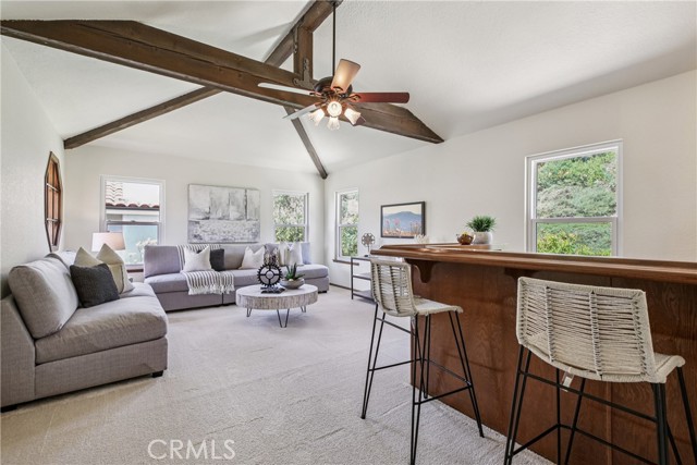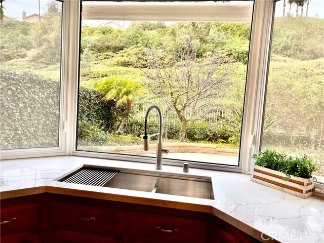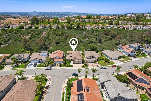 Entertainer's delight! Kitchen has new white quartz countertops and 40-inch sink. Cabinets removed to create more space and light. Enjoy 3,653 sq. ft. of home, this spacious and tastefully upgraded home features a versatile floor plan. There are 5 bedrooms including the room/office next to the primary suite! The expansive open living room, cathedral ceiling, inviting dining area, and entry area welcome your family and guests. On cold nights, the fireplace warms everyone's heart as they enter. The formal living room and dining room offer elegant spaces for entertaining. The versatile, large downstairs family room with another cozy fireplace opens seamlessly to the family dining area and remodeled kitchen — featuring upgraded cabinetry, quality appliances, a brand new Whirlpool refrigerator, walk-in pantry, endless cabinets and a sunny view of the greenbelt. The kitchen is large enough to entertain guests. This is plumbed for electric & gas. The home has five bedrooms, three beautifully appointed bathrooms, an spacious family room downstairs, and a large bonus room upstairs Downstairs includes a bedroom/office with nearby full bath — ideal for guests or remote work. Includes a sliding glass door for direct access. The expansive, sunny primary suite offers an attached separate bedroom/office, walk-in closet, French doors leading to a large balcony, and a luxurious ensuite bathroom with an oval soaking tub, two chandeliers, separate shower, dual sinks, private toilet room, and upgraded cabinetry. The built-in cabinets in the bedroom can display pictures, awards, books or collections. There is a laundry chute & a built-in safe Upstairs, enjoy a spacious bonus room with a built-in bar, refrigerator, and sink — perfect for media, game nights, or relaxation. Just add a microwave and a pool table? Two additional bedrooms upstairs provide ample space for family & guests. Low-maintenance landscaping surrounds the home, with tranquil greenbelt views from the backyard, kitchen, family dining, and family room. Located in a desirable neighborhood with access to the City Community Center's Olympic pool, spa, soccer park, outdoor theater, and gym. Nearby Laguna Niguel Regional Park offers a lake, picnic areas, tot lots, and fishing. Conveniently close to shopping and essentials, Costco, Whole Foods. Re-piped 2020. Section One clearance. Defensible space approval from Fire Dept. Reroofed in 2001 Top-rated schools! Low HOA dues, $165/mo, low tax rate.