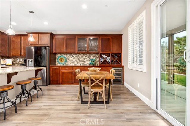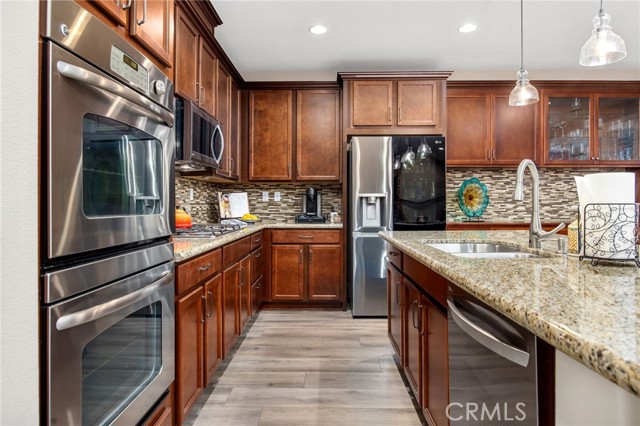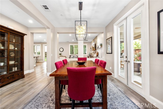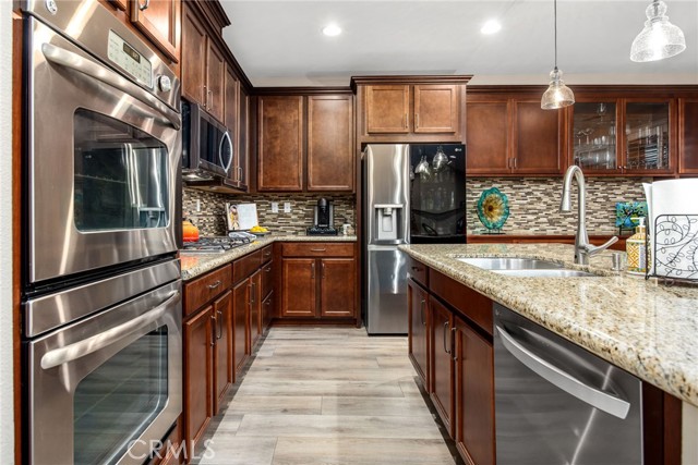 Stunning and extensively upgraded Next Gen home located on a quiet, safe cul-de-sac with beautiful hill views and peaceful surroundings. This versatile property offers a private Next Gen suite with its own entrance, full bedroom and bath, private laundry, kitchenette with refrigerator (negotiable), and family room — ideal for multi-generational living, guests, or rental potential. The main home welcomes you through a striking wood and glass front door into a thoughtfully updated interior featuring luxury vinyl plank flooring, new carpet on stairs and bedrooms, fresh interior and exterior paint, plantation shutters, 30 recessed lights, and updated ceiling fans and fixtures throughout. The dramatic floor-to-ceiling stone fireplace with TV wiring above anchors the living space. The formal dining room showcases a new chandelier and French doors leading to the backyard. The gourmet kitchen includes granite countertops, custom cabinetry with pull-outs in lower cabinets, updated hardware, center island with bar seating, and updated appliances including microwave, dishwasher, wine fridge, garbage disposal, and new faucet. Upstairs offers a spacious bonus room, convenient upstairs laundry, and an upgraded primary suite with custom closet organizers, dual sinks, updated faucets, and a remodeled bath featuring natural stone tile and replaced shower. Bathrooms include updated lighting and replaced/repaired toilets. Major system improvements include all new HVAC ducting, AC repair with new coil and reseal, serviced tankless water heater, new thermostats, replaced garage door springs, laundry valve repair, updated outlets, replaced smoke/CO detectors, and freshly painted garage with overhead storage. Outdoor living shines with a private front courtyard for added privacy and secure package delivery, wrap-around aluminum patio cover with power screens, replaced patio fans, upgraded sprinklers, repaired fencing, professionally trimmed cypress trees, and two storage sheds. Enjoy tranquil evenings with sounds of frogs and crickets, views of the hills, creek and ducks after rain, and visits from hummingbirds, cranes, and herons. Additional features include exterior lantern lighting, abundant storage throughout, three-car garage, and solar lease for energy efficiency. A meticulously maintained home blending upgrades, comfort, and serene lifestyle living.