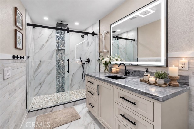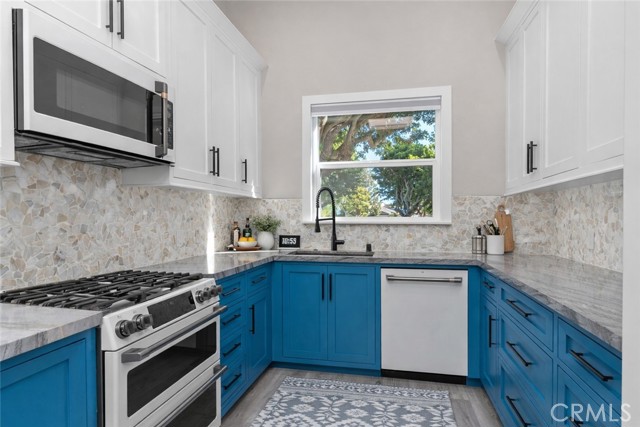 Welcome to 4482 Shorebird Drive — a luxury-remodeled Huntington Harbour condo offering modern coastal living in one of the area's most desirable communities. This beautifully reimagined 2-bedroom, 2-bath home has been upgraded top-to-bottom with high-end finishes and effortless beach-style design. Located just a 10-minute bike ride to Huntington Beach, you're moments from Davenport Beach, Humboldt Island beaches, Harbour View School, and the nearby Trader Joe's shopping center — an unbeatable Harbour location. Inside, soaring vaulted ceilings, engineered hardwood flooring, and all-new windows and doors (2024) create an airy, light-filled living space. The chef's kitchen features GE Cafe smart appliances (2022) — Bluetooth and app-enabled — including a gas range, double oven, refrigerator, wine fridge, and dishwasher. Two full slabs of Brazilian Quartzite (Florida Wave) pair with custom soft-close cabinetry for a sleek, luxury finish. The living room includes an electric fireplace and motorized blinds, while the primary suite offers heated bathroom floors, a cedar-lined custom closet, and a spa-like shower with rain, wall, and handheld heads. Additional upgrades include a Nest HVAC system (2021), new stair rails, new insulation in all bathrooms, and attic access with fan and ladder. BONUS VALUE: There are two additional rooms on the bottom level that are NOT included in the square footage — ideal for a home office, workout room, storage, art studio, or guest overflow. This rare extra space adds incredible functionality and flexibility. This private, gated 21-unit community offers resort-style amenities including a pool, spa, clubhouse, and gated dog park. You'll also enjoy two private garage spaces with epoxy floors, laundry hookups, and enclosed systems for a clean, finished feel. Homes in this community rarely come on the market — don't miss this turnkey Huntington Harbour coastal retreat with bonus space and luxury upgrades throughout. Let this be your next chapter in Surf City living.