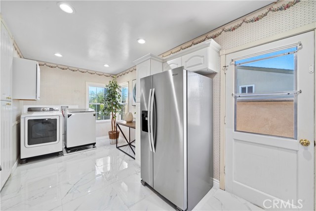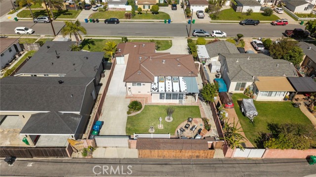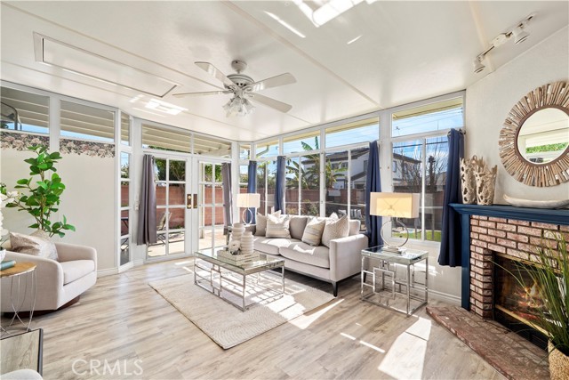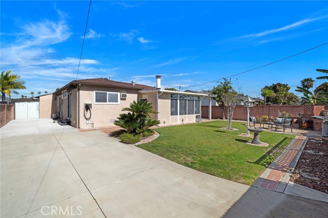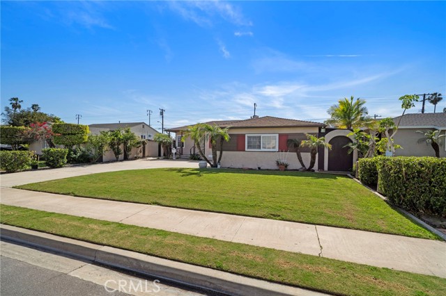 Wow! What a find! This absolutely charming, upgraded, and expanded single story home is located in the best Midway City neighborhood, one block from Huntington Beach, in an award-winning school zone, and has both a front driveway to a two-car garage AND a gated back driveway with alley access that can park 6 more cars or RV and includes a Tesla charging station. This sweet dream home offers 3 bedrooms, 2 bathrooms, and a total of 1,297 SQFT of the house - that includes: 1,059 SQFT, original home size, PLUS a beautiful 238 square foot sunroom with fireplace, ceiling fan, and French Doors opening to a pristine wrap-around tranquil backyard that includes a covered patio, a 2nd flagstone patio with outdoor fireplace, lush lawn, brick-accented hardscape, manicure landscaping, blockwall fencing, a storage shed, and that exceptional back driveway with gates to alley. Such a great backyard for entertaining! Beautiful curb appeal and welcoming front porch greet you. Step inside to Luxury Vinyl Plank Flooring, extensive recessed lighting, dual pane windows, mini-split A/C, and a remodeled kitchen which boasts granite countertops, Carrera-marble-style flooring, custom white cabinetry, garden window, and stainless gas stove & microwave plus dishwasher & refrigerator. There is a beautiful breakfast nook dining area open to the kitchen that has washer/dryer hook-ups (laundry can be inside or in garage). Both bathrooms are remodeled with new vanities, fixtures, and tile flooring, designer tile surrounds, and glass enclosures. There is a tub/shower combo in one and walk-in shower in the primary suite. This lovely home is truly located in an exceptional neighborhood near Little Saigon, Old World, Golden West College, and Bella Terra, the beach, and has easy freeway access.