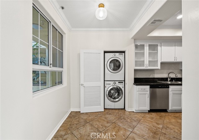 Immaculately maintained and filled with natural light, this inviting two-bedroom condo offers the perfect blend of comfort, flexibility, and location. From the moment you enter, you're welcomed by an expansive open-concept living and dining area where sunlight pours through a large sliding glass door, creating a bright and uplifting atmosphere throughout the day. Just off the main living space, a thoughtfully positioned niche provides the ideal setting for a home office, reading corner, or creative studio — an increasingly valuable feature for today's lifestyle. Near the entry, the modern yet charming kitchen features granite countertops, ample cabinetry, and a functional layout that flows seamlessly into the main living areas. A discreet laundry closet with stacked washer and dryer adds convenience without compromising space. Warm neutral tile anchors the common areas, while rich, medium-tone wood-style flooring brings warmth and comfort to the bedrooms. The spacious primary suite offers a true retreat, complete with a generous walk-in closet and a spa-inspired ensuite bathroom featuring dual sinks and a soaking tub designed for relaxation. The secondary bedroom enjoys abundant natural light, a mirrored sliding-door closet, and tranquil pool views. A beautifully appointed hall bathroom with chic vanity, stylish lighting, and a tub/shower combination serves guests and residents alike. Residents enjoy access to desirable community amenities including a sparkling pool, recreation room, and sauna. The controlled-access garage provides assigned tandem parking for added ease and security. The neighborhood is very walkable and is surrounded by coffee shops and restaurants and is tucked away between Toluca Lake, Tujunga Village, and Universal City, giving you access to a world-renowned theme park and local hidden gems alike. This is a home that offers both lifestyle and location — an exceptional opportunity that is not to be missed.