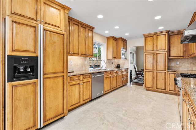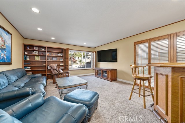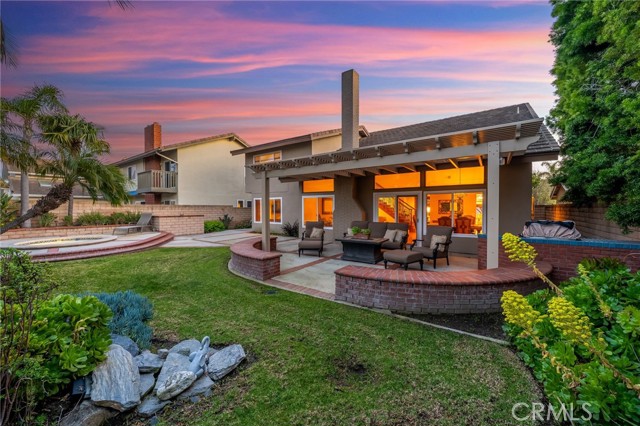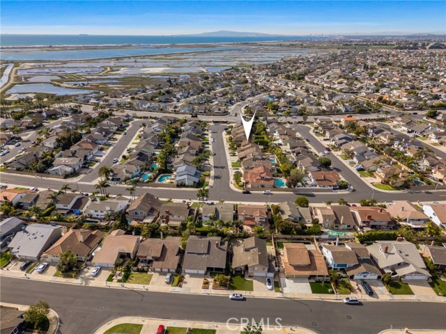 Nestled in the highly sought-after Bolsa Landmark community, this refined two-story home embodies the essence of coastal living, just minutes from sandy shores, the Bolsa Chica Ecological Reserve and Huntington Beach Central Park. Set on a premium oversized lot, the property greets you with lush landscaping and elegant stone accents, leading to a spacious foyer and striking staircase that immediately sets the tone for the home's sophisticated design. The formal living and dining rooms exude warmth, featuring rich wood flooring, a stately fireplace, and expansive picture windows and sliding glass doors that flood the space with natural light while offering serene views of the backyard. At the heart of the home, a gourmet kitchen dazzles with custom wood cabinetry, sleek granite countertops, polished travertine flooring, and an oversized breakfast nook — perfect for casual morning meals. Just past the staircase, the spacious family room provides a cozy retreat, complete with built-ins, a wet bar, its own private patio, and a convenient half bath. Upstairs, the expansive primary suite offers a tranquil escape, complete with vaulted ceilings, dual-sink vanities, a luxurious bath-in-shower combo, and two closets. Three additional guest bedrooms share a beautifully updated bathroom, showcasing a dual-sink granite vanity and a custom-tiled shower/tub combination. A versatile bonus space of approximately 150 square feet (not included in the assessor's square footage) completes the upper level, offering endless possibilities as a home gym, office, or playroom. Step outside to the serene backyard, featuring a spa perfect for unwinding after a long day, while the 3-car garage adds convenience and storage. Situated within the prestigious Seacliff Elementary and Huntington Beach High School districts, this home is centrally positioned on a pride-of-ownership cul-de-sac. Nearby walking trails, playgrounds, a dog park, equestrian center, and easy access to the beach and wetlands make this location a dream for those seeking an active coastal lifestyle. Welcome home to the pinnacle of Southern California living — where elegance, comfort, and outdoor adventure come together in one of Huntington Beach's most cherished neighborhoods.